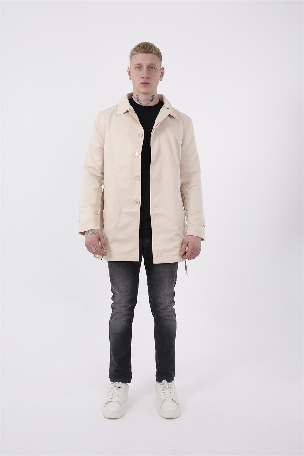R-5750 Men’s Jacket Collar Raw Stitch Fleece Sweatshirt – Beige