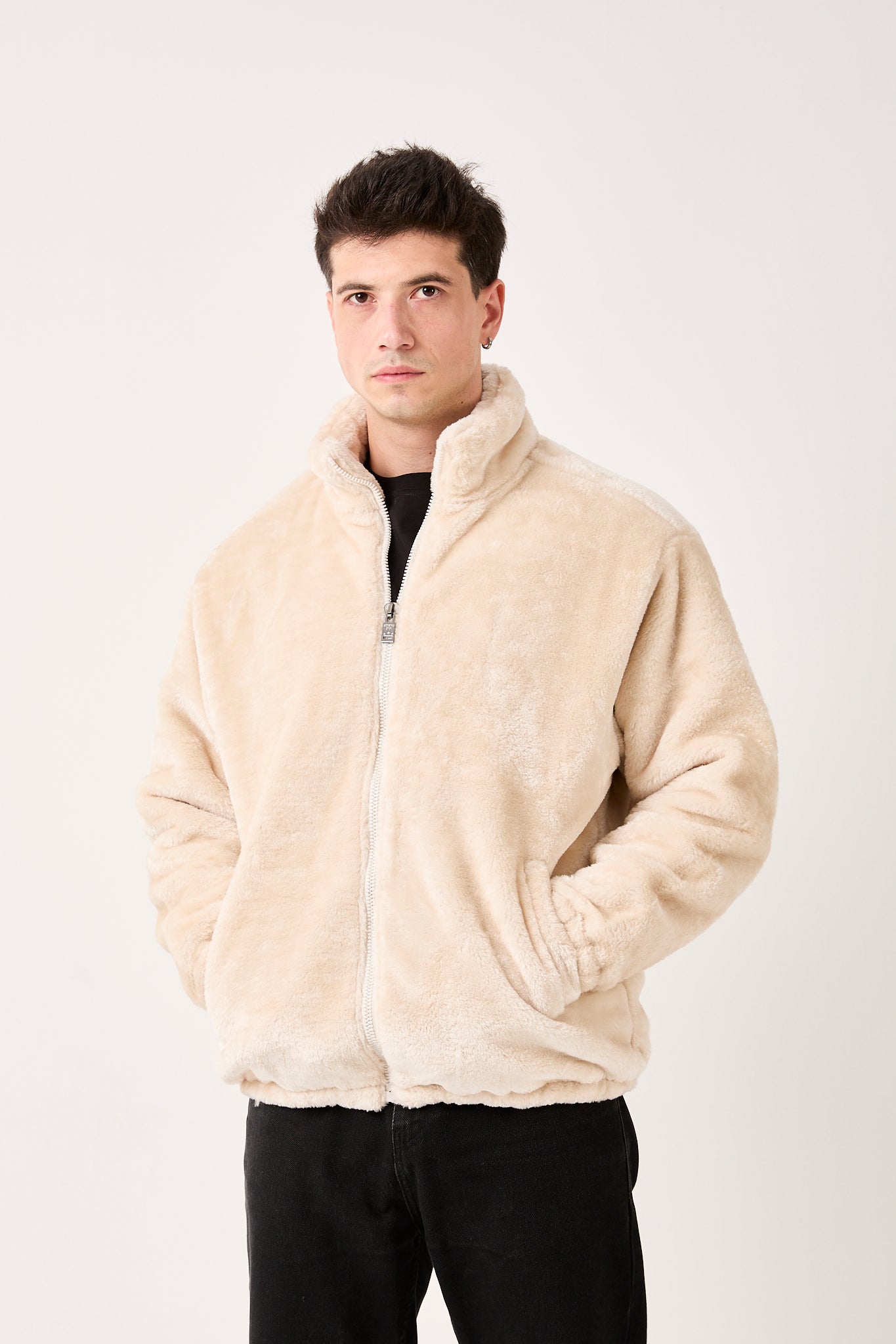 Keep warm in style with the RocqerX Beige Plush Zip-Up Jacket, made from 100% premium polyester for an ultra-soft, velvety feel. This jacket offers both comfort and a clean minimalist look, featuring a full front zip, high stand-up collar, and elasticated cuffs and hem for extra warmth and flexibility.