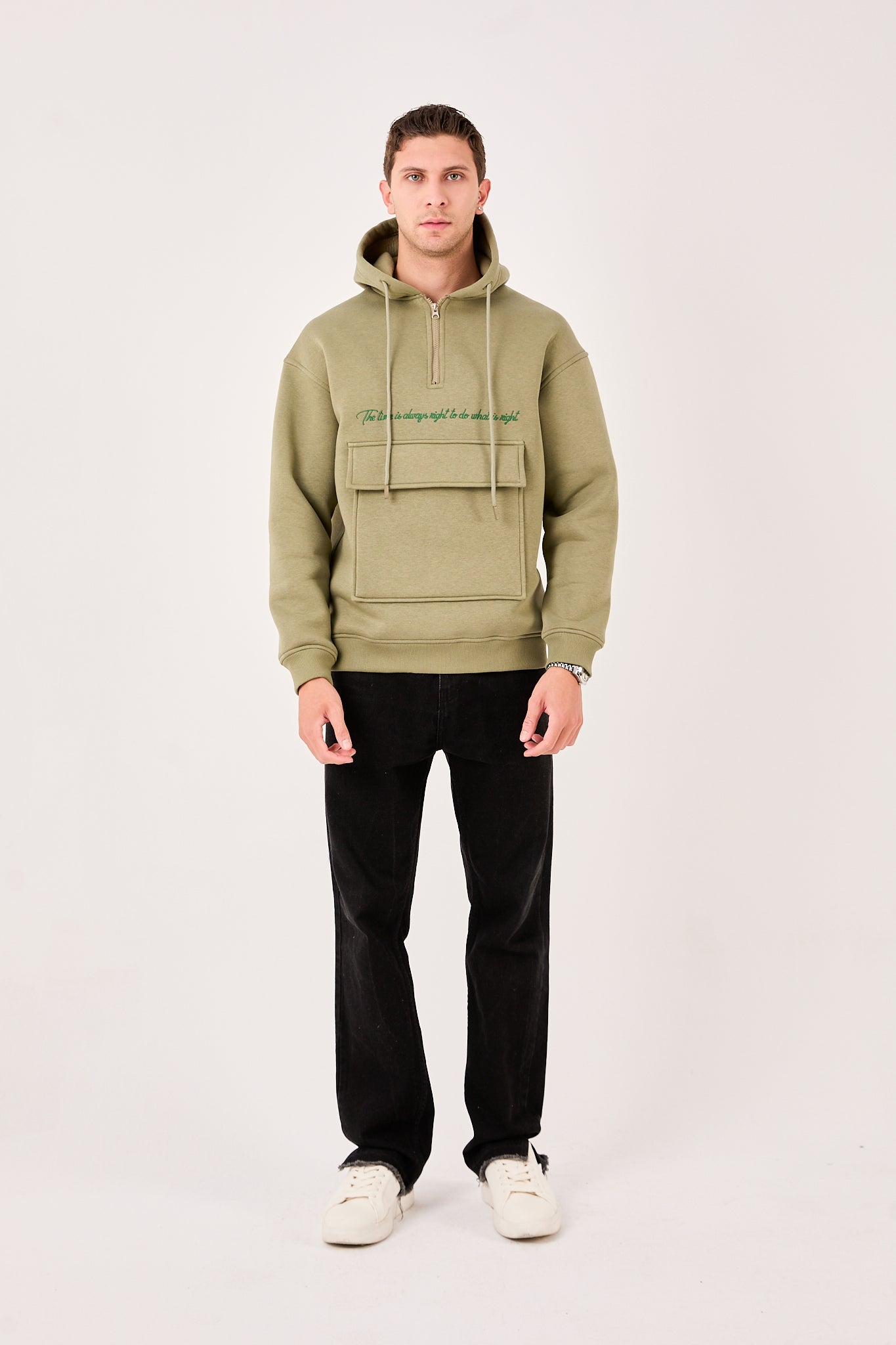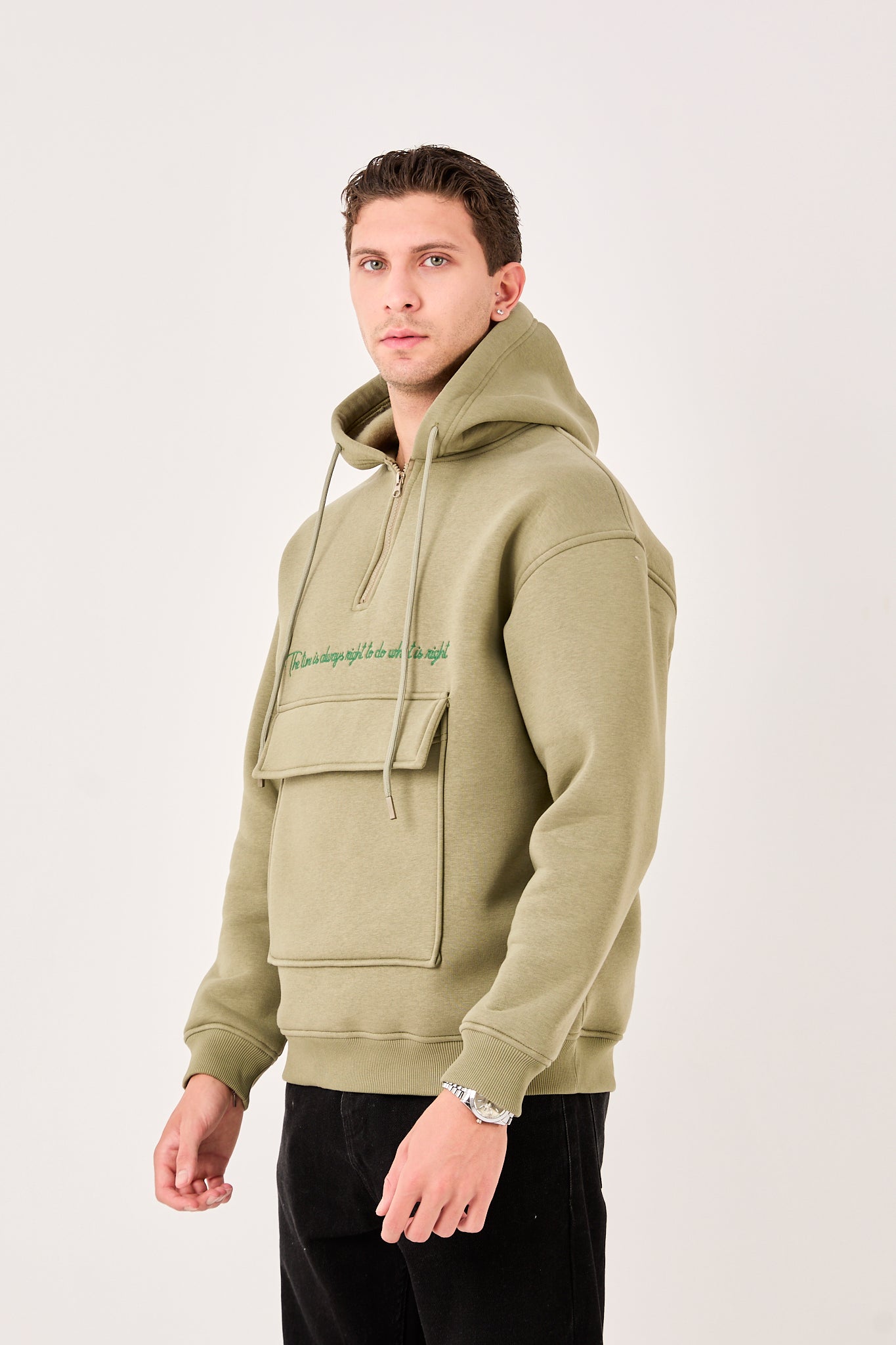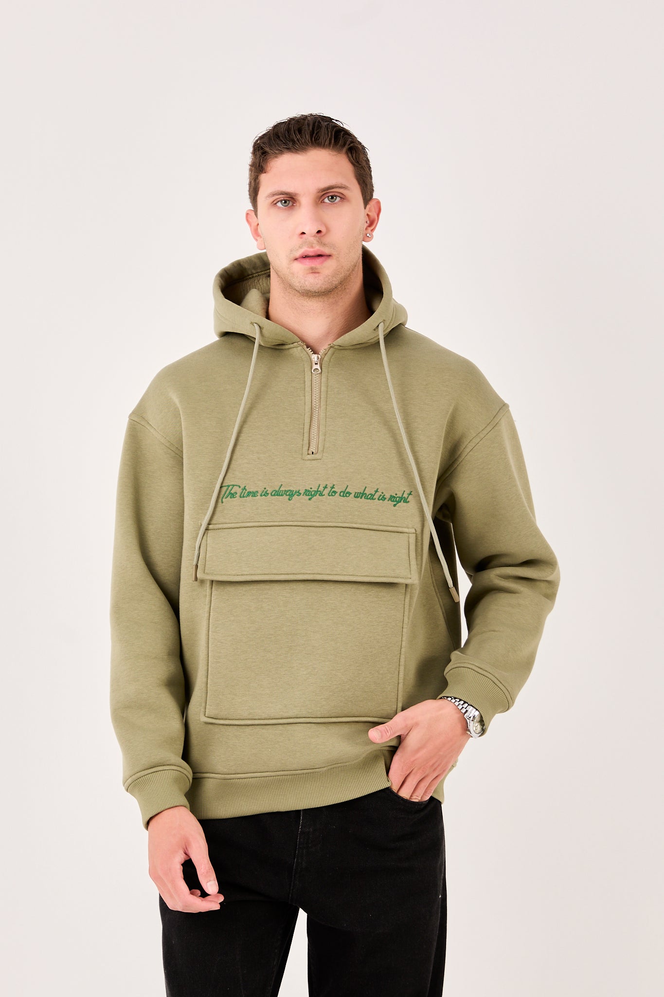 X-4005 Men’s Oversized Fleece-Lined Hoodie – Green, Half-Zip Sweatshirt with Front Pocket