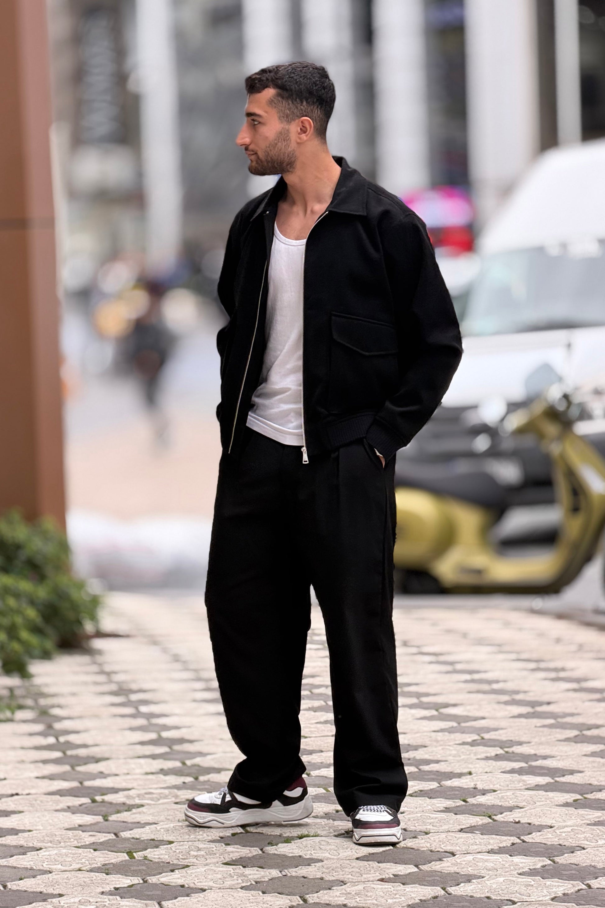 This premium black jacket blends modern streetwear aesthetics with the warmth and structure of kaşe fabric. Designed with a relaxed silhouette, it features a durable double-zip closure, ribbed cuffs and hem, and oversized utility-style flap pockets for both function and style.