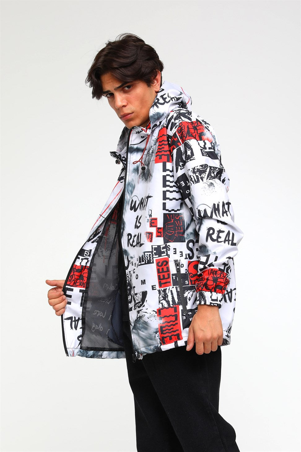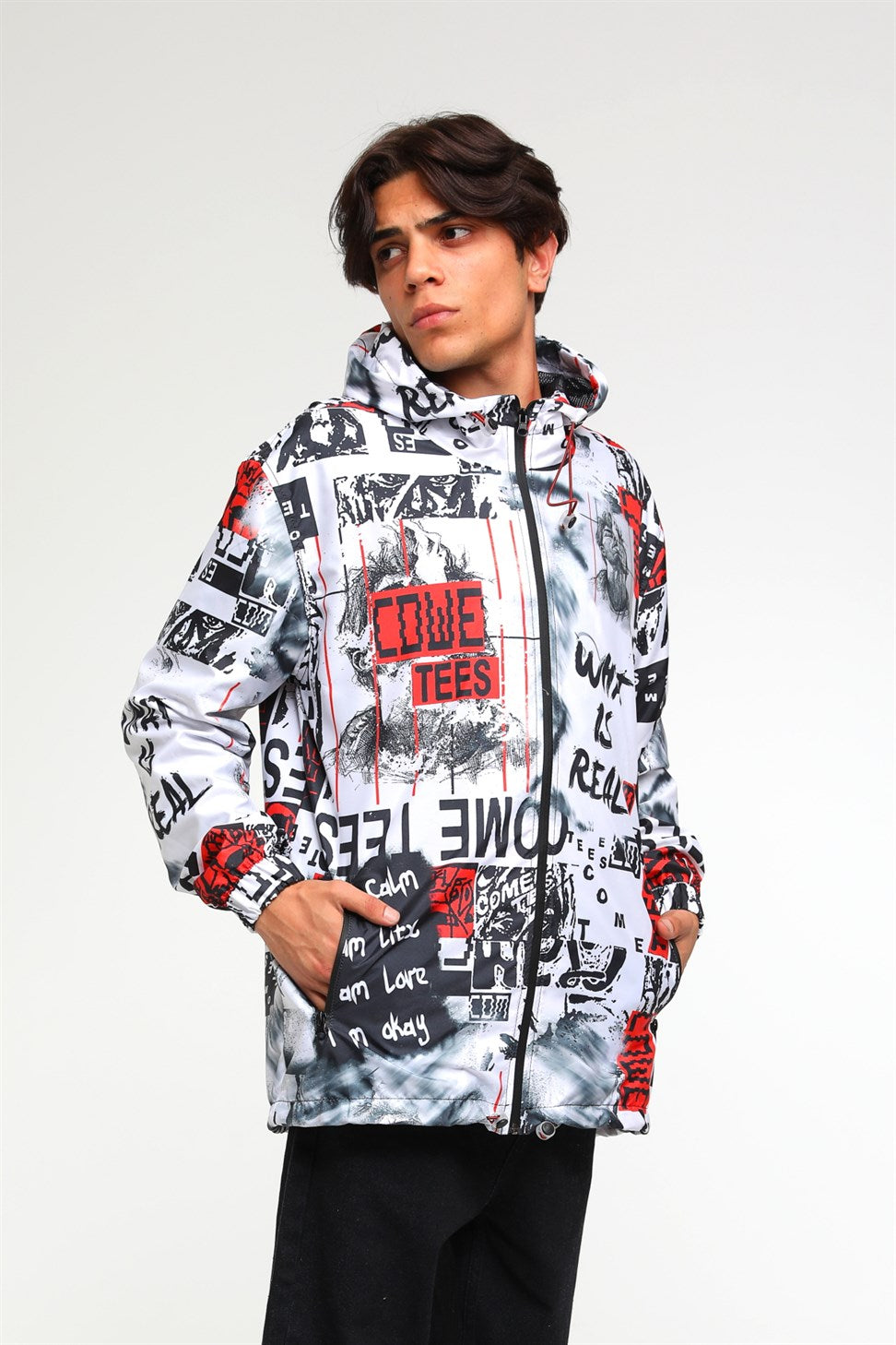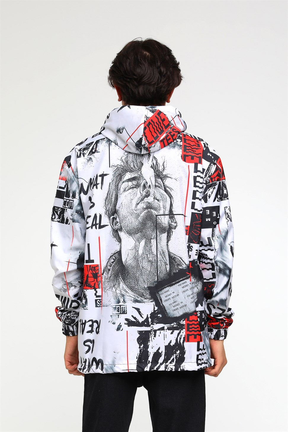 R-2103 DUMANLI ADAM BASKILI KAPÜŞONLU RÜZGARLIK