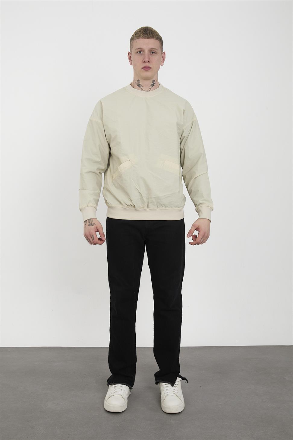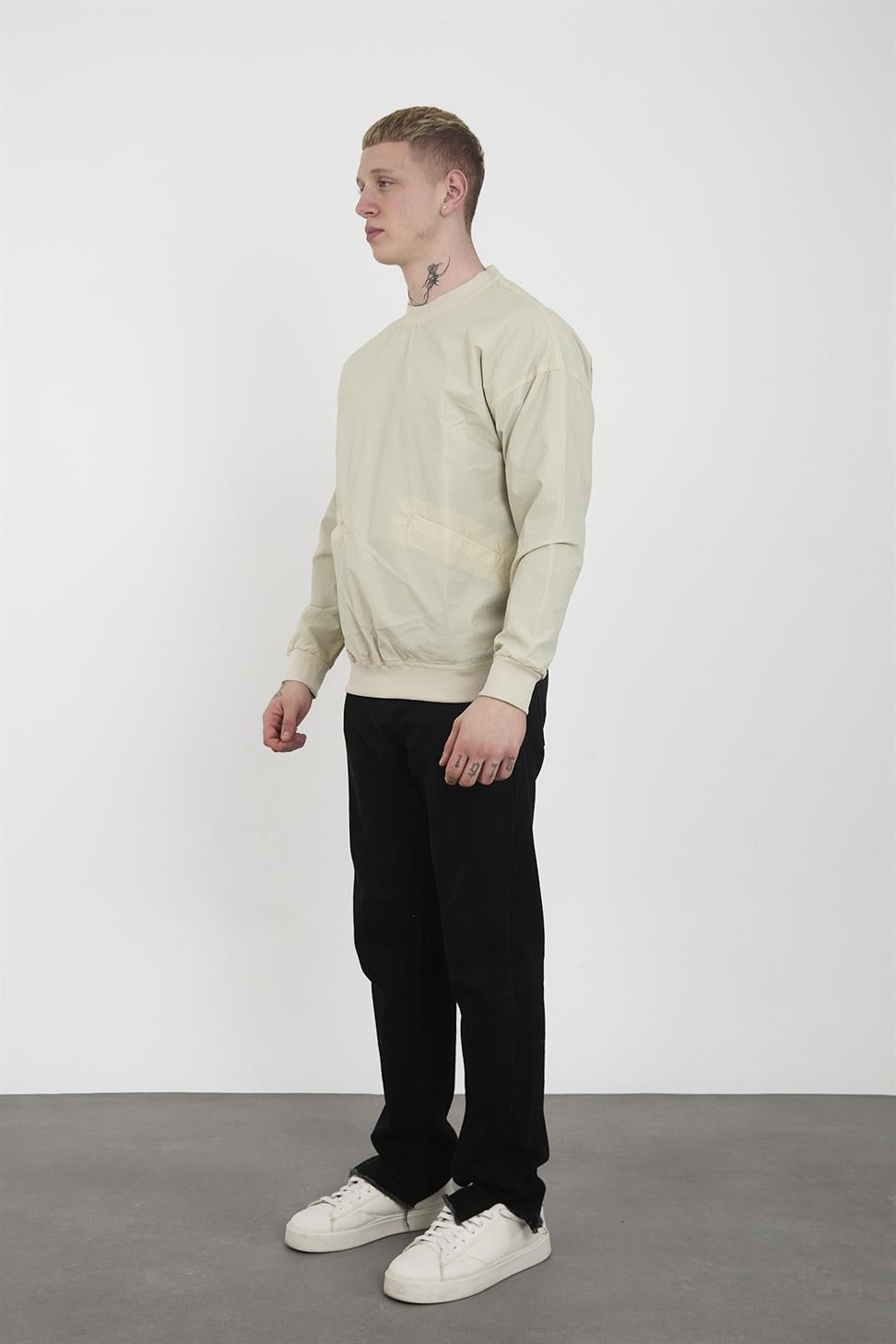 X-1004 Oversized Sweatshirt with Zipped Pocket – Beige | 3-Thread Brushed Fleece