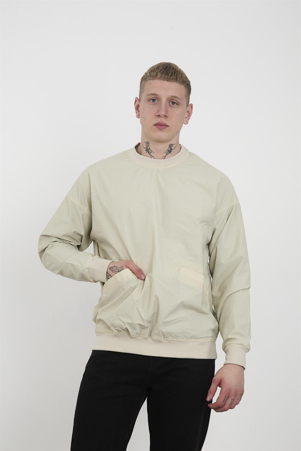 A stylish men’s sweatshirt with ribbed hem and cuffs, complete with a lined interior for added comfort. In elegant beige, it offers a clean and versatile look that suits both casual wear and sporty outfits. Crafted from 100% polyester parachute fabric, it ensures durability, a lightweight feel, and ease of movement. Perfect to pair with jeans, joggers, or casual trousers, this sweatshirt is a timeless wardrobe essential.