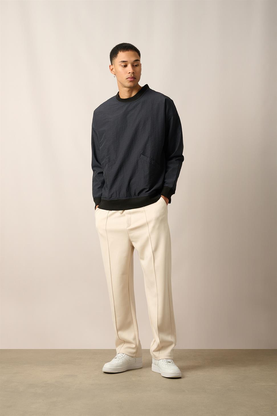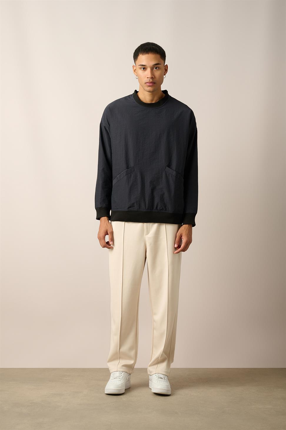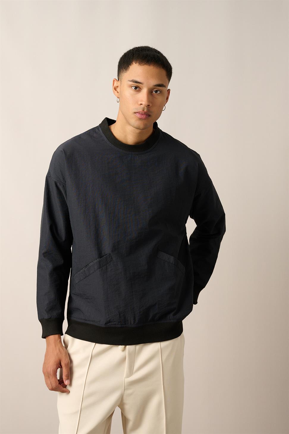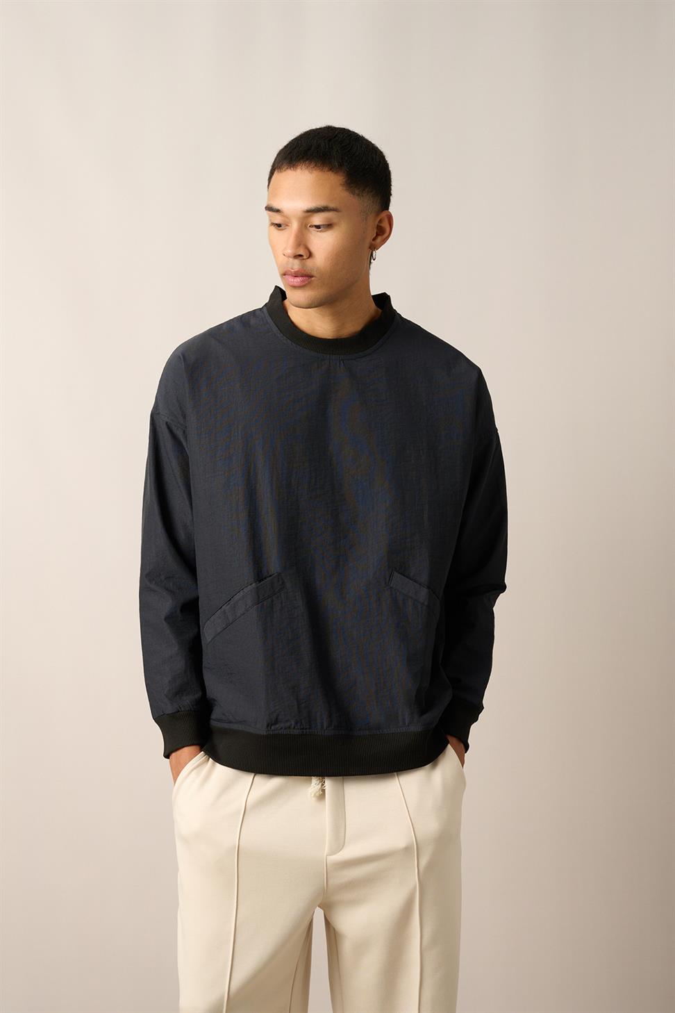 X-1005 Oversized Sweatshirt with Contrast Shoulder Panels & Zipped Chest Pocket – Navy | 3-Thread Brushed Fleece