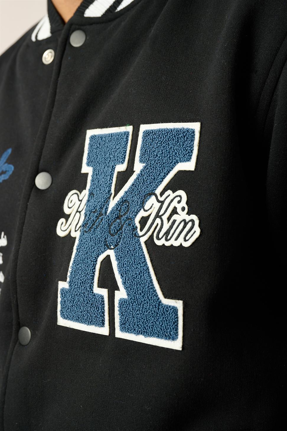 A classic men’s college jacket with embroidery details in timeless black. Designed with a sporty yet stylish look, this jacket features a three-thread fleece construction with a lined interior, providing both warmth and comfort. The embroidered accents add a modern and dynamic touch, making it perfect for casual wear, street style, or layering over everyday outfits. With the R-2429 style code, this jacket is a versatile choice for cooler seasons.