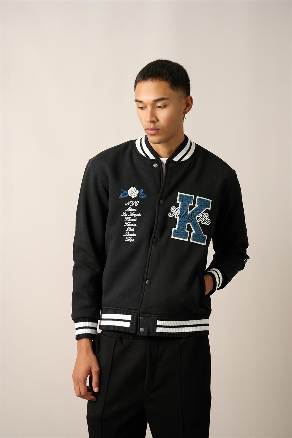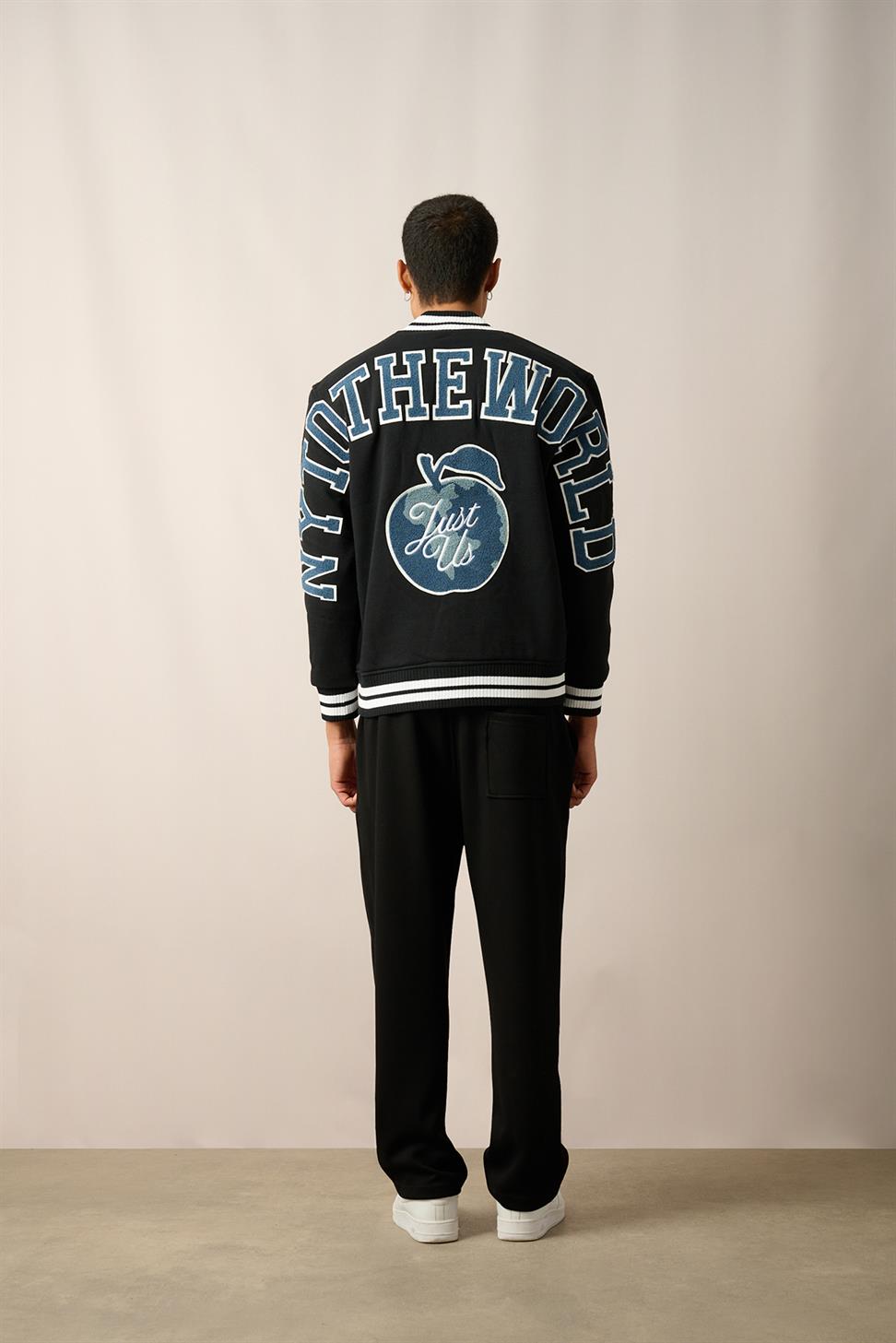 R-2429 Men’s Embroidered Fleece-Lined College Jacket – Black