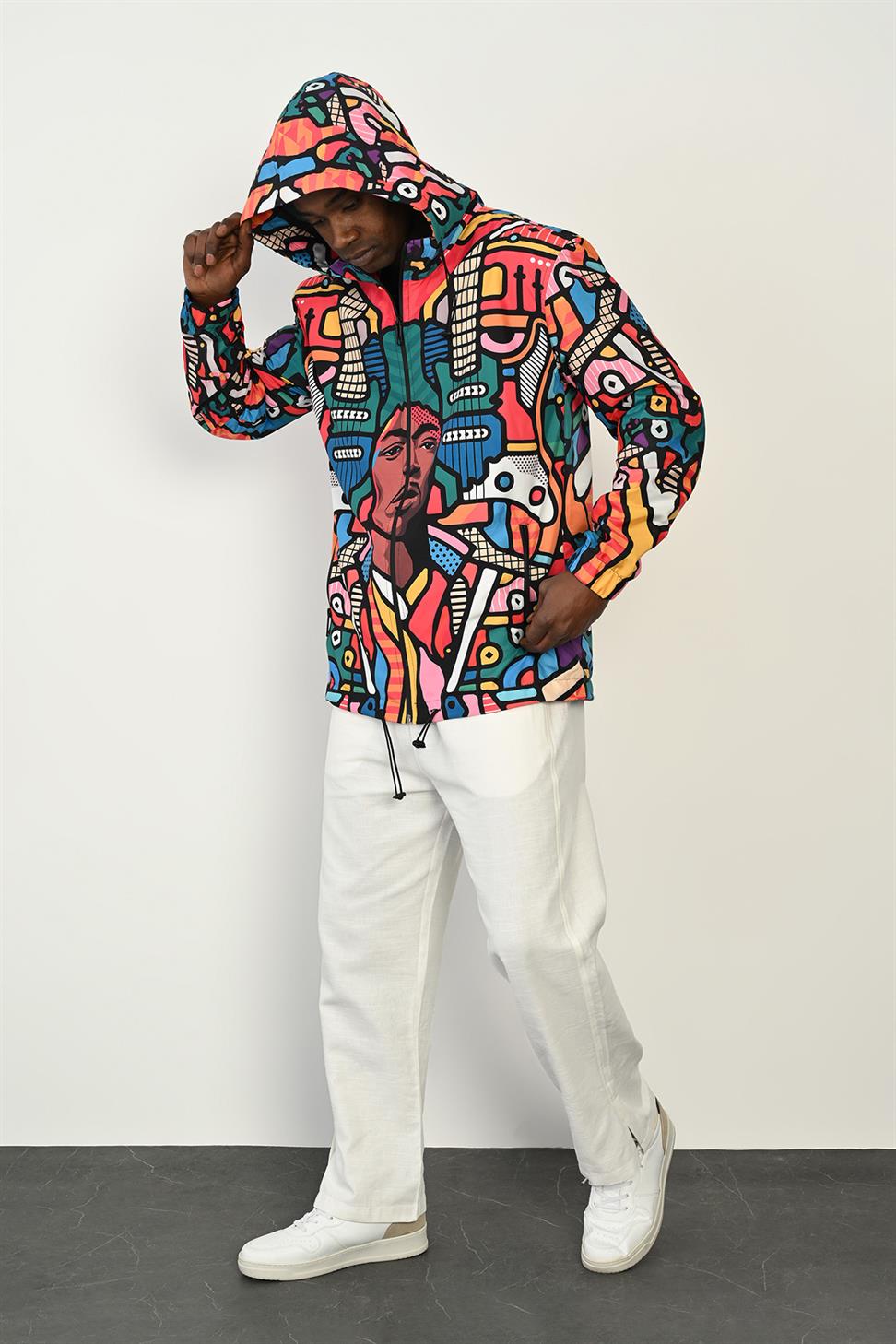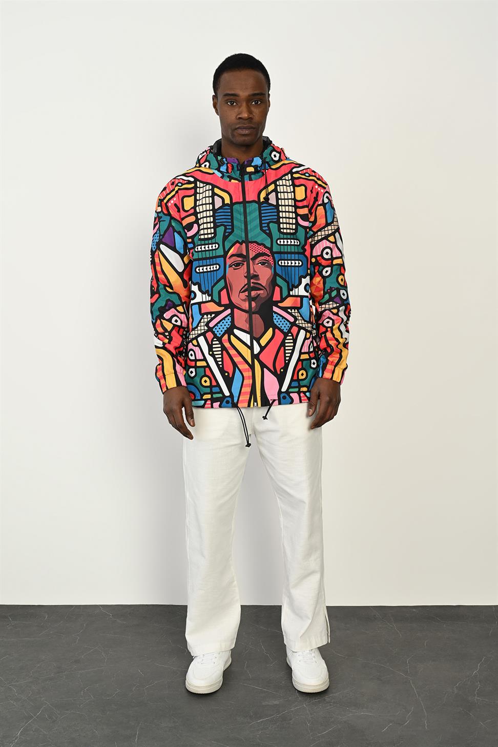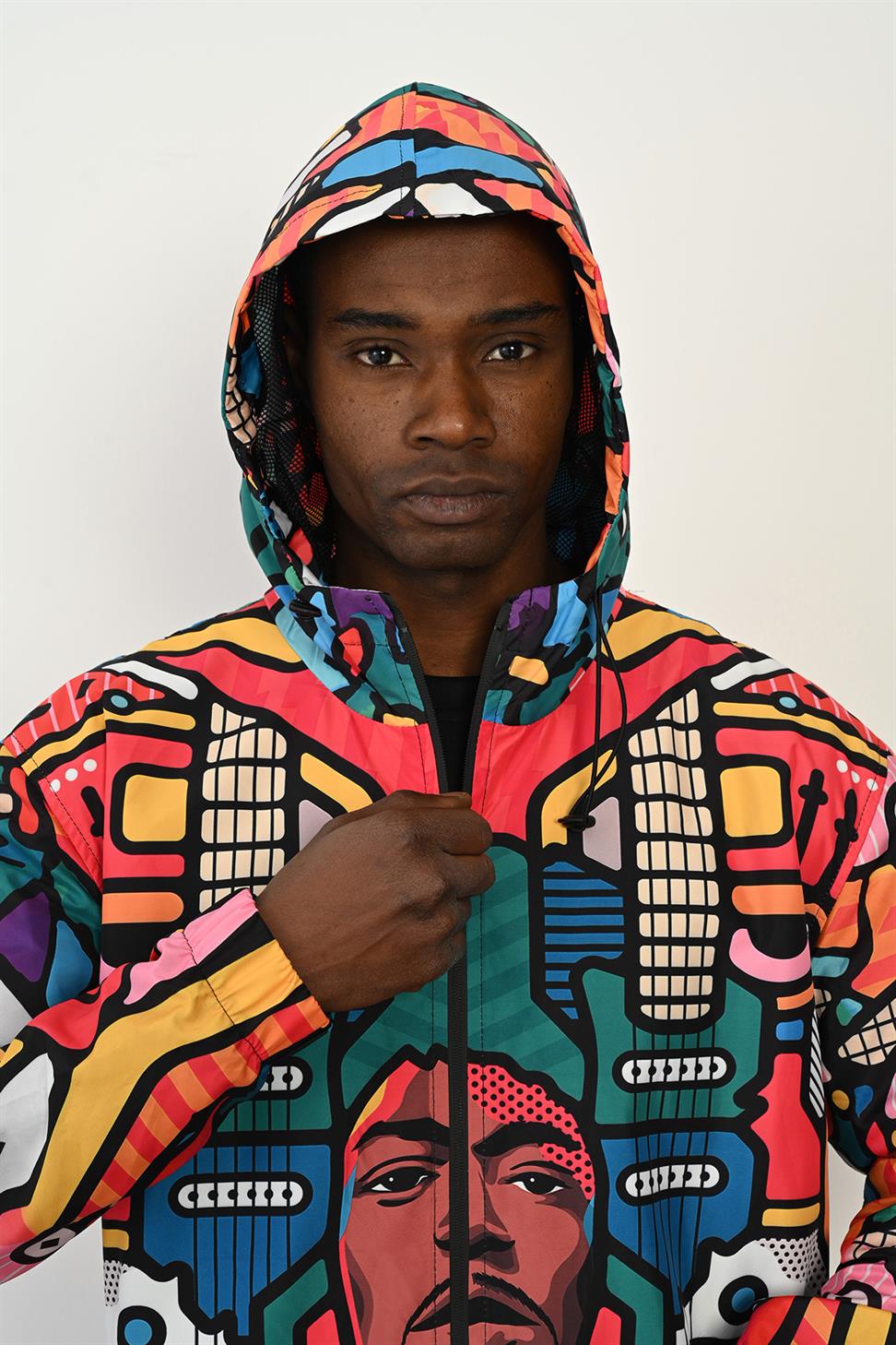 Designed for on-the-go protection, this jacket combines a bold digital print with a breathable mesh lining to keep you comfortable from city commutes to weekend escapes. The 100% polyester parachute fabric shell is naturally wind resistant and quick drying, offering reliable coverage in light rain/showers while staying lightweight and packable. A practical everyday layer that moves easily between seasons and styles.