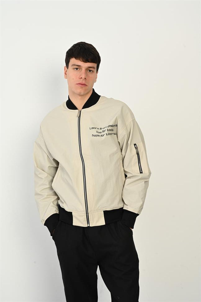 Lightweight parachute jacket with sleeve zipper detail and a lined interior for comfort and structure. Cut from 100% polyester, it’s wind resistant, quick drying, and easy to pack.