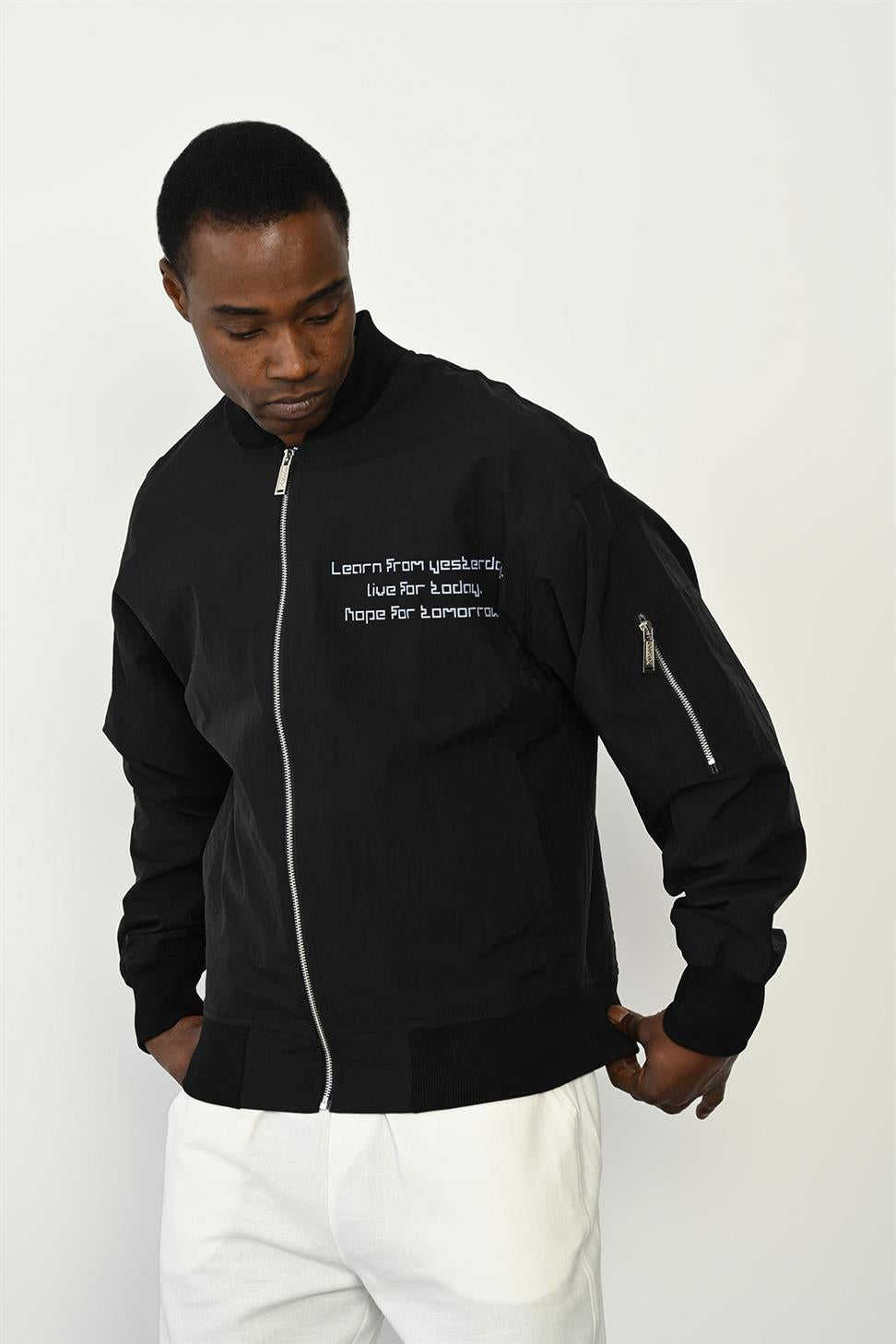 Lightweight parachute jacket with sleeve zipper detail and a lined interior for comfort and structure. Cut from 100% polyester, it’s wind resistant, quick drying, and easy to pack.