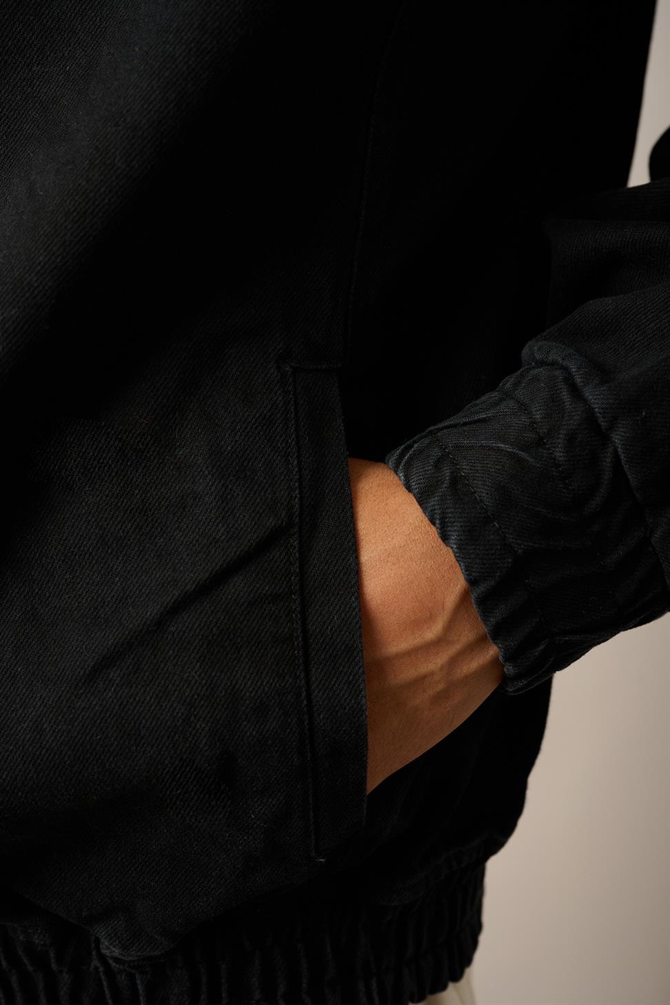 R-2454 Black Half-Zip Denim Sweatshirt with Elastic Hem and Cuffs