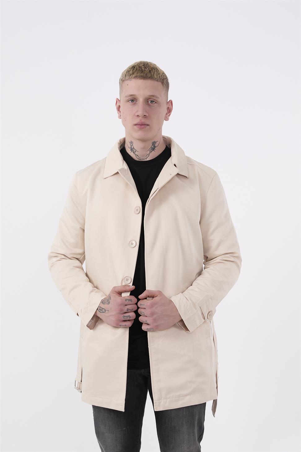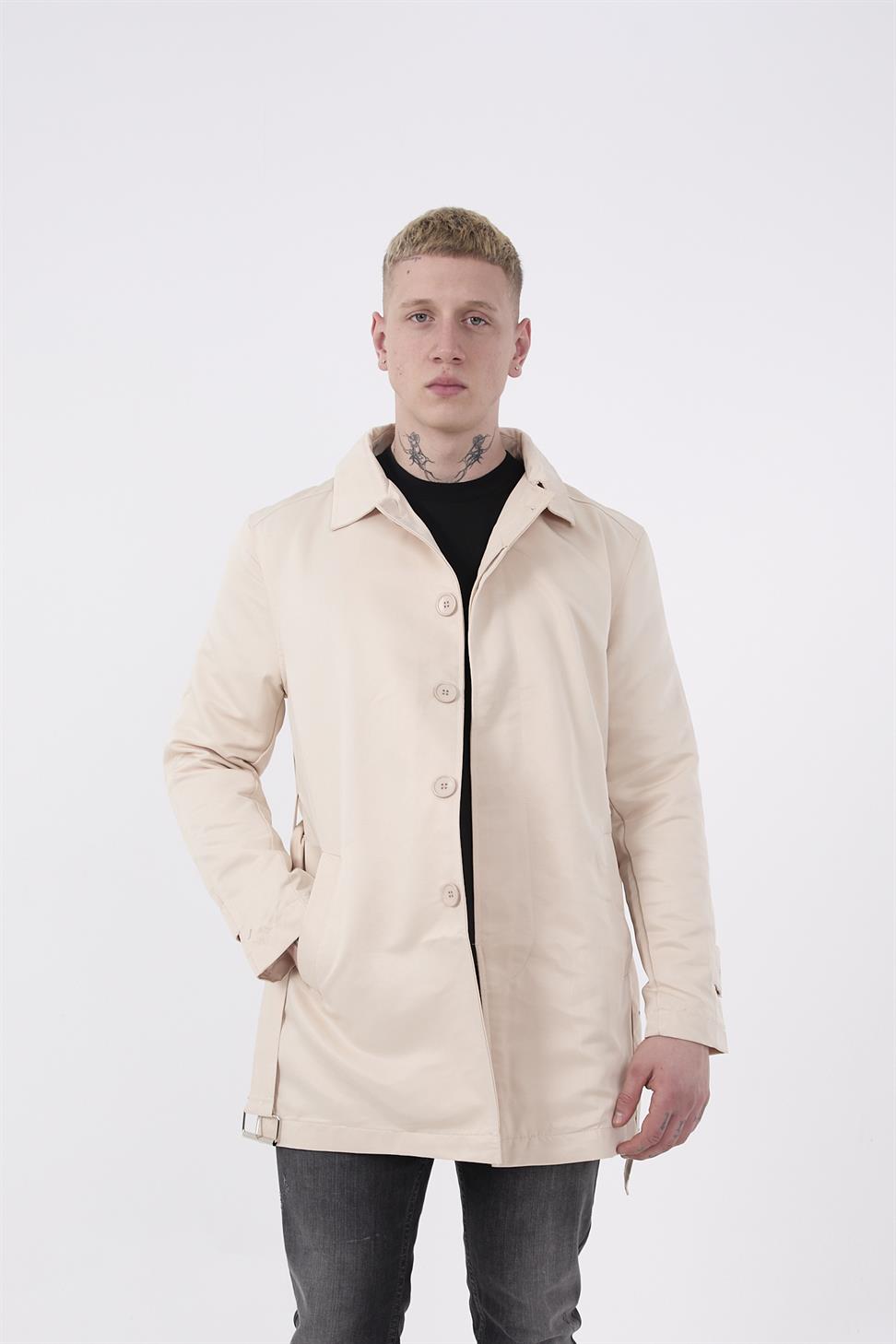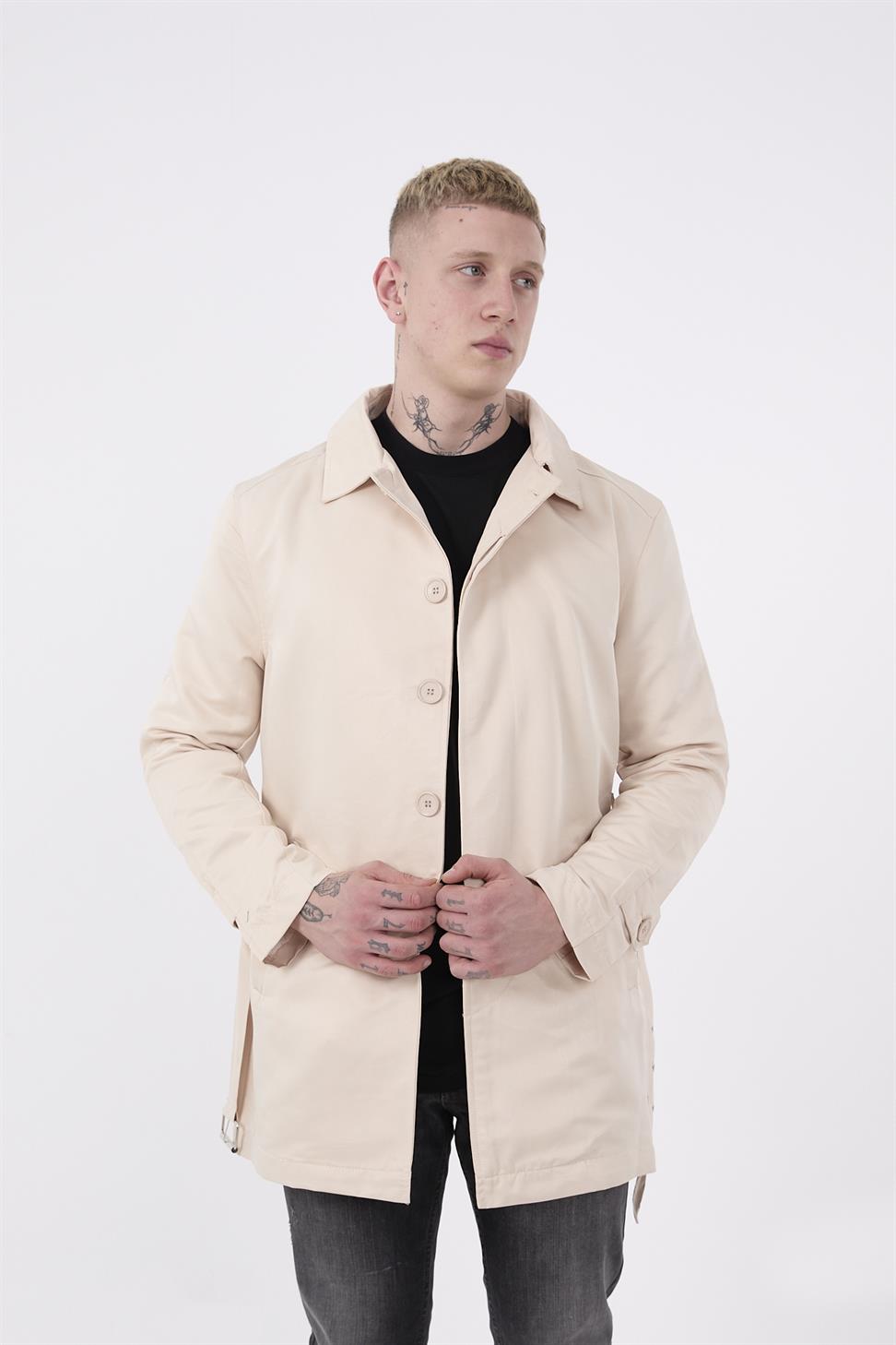 R-2465 Men’s Belted Trench Coat with Epaulette Detail – Beige