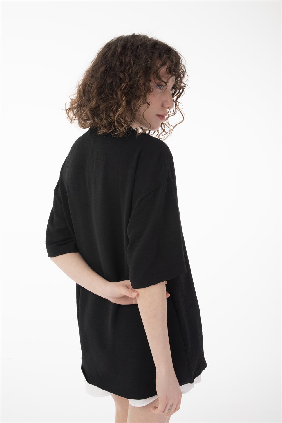 R-3737 R-3737 Unisex 100% Polyester Aerobin Shirt – Black Short Sleeve with Relaxed Oversize Fit
