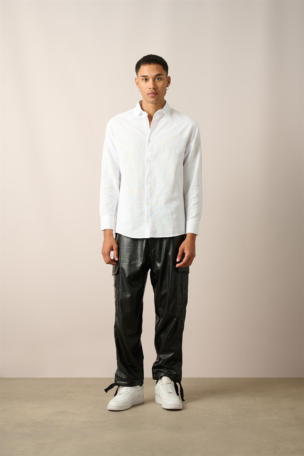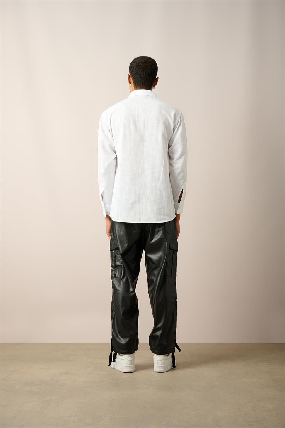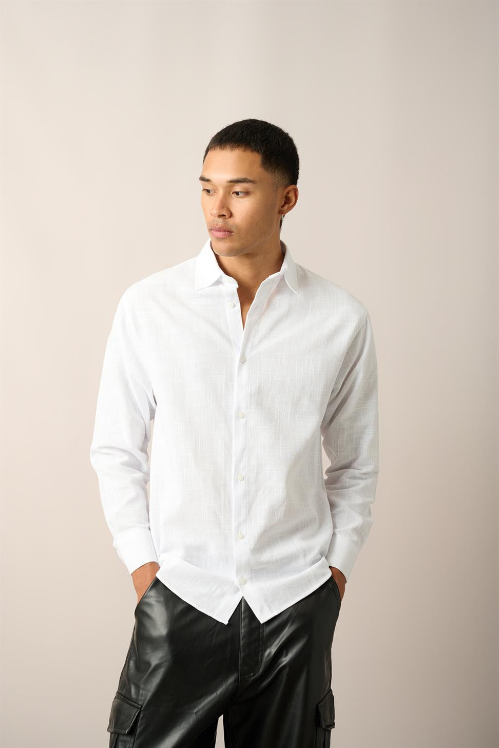 Men’s 100% Cotton Linen Shirt – Classic White Long Sleeve, Breathable & Lightweight