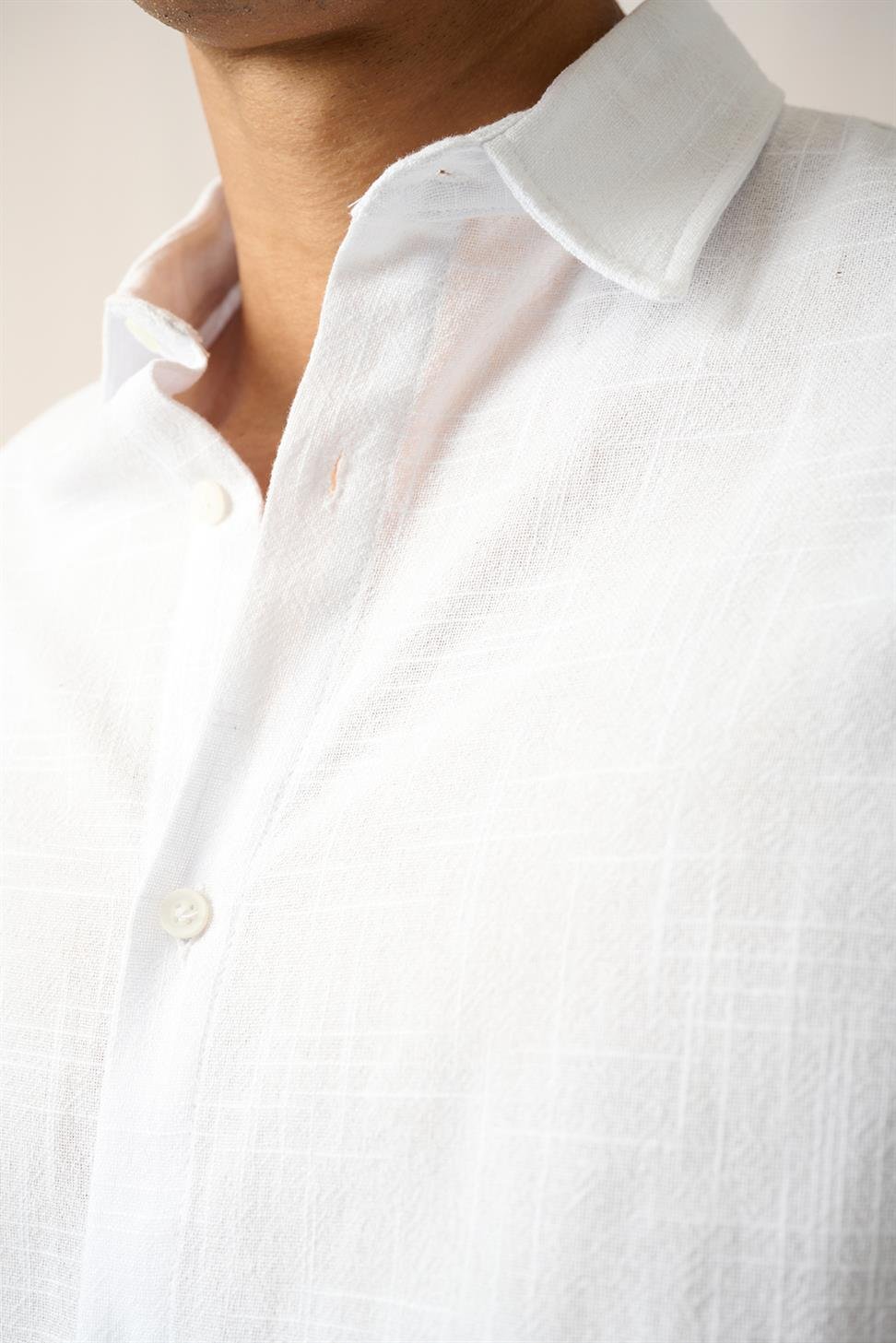 R-3780 Men’s 100% Cotton Linen Shirt – Classic White Long Sleeve, Breathable & Lightweight