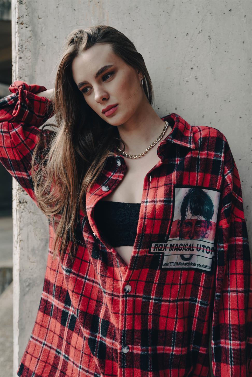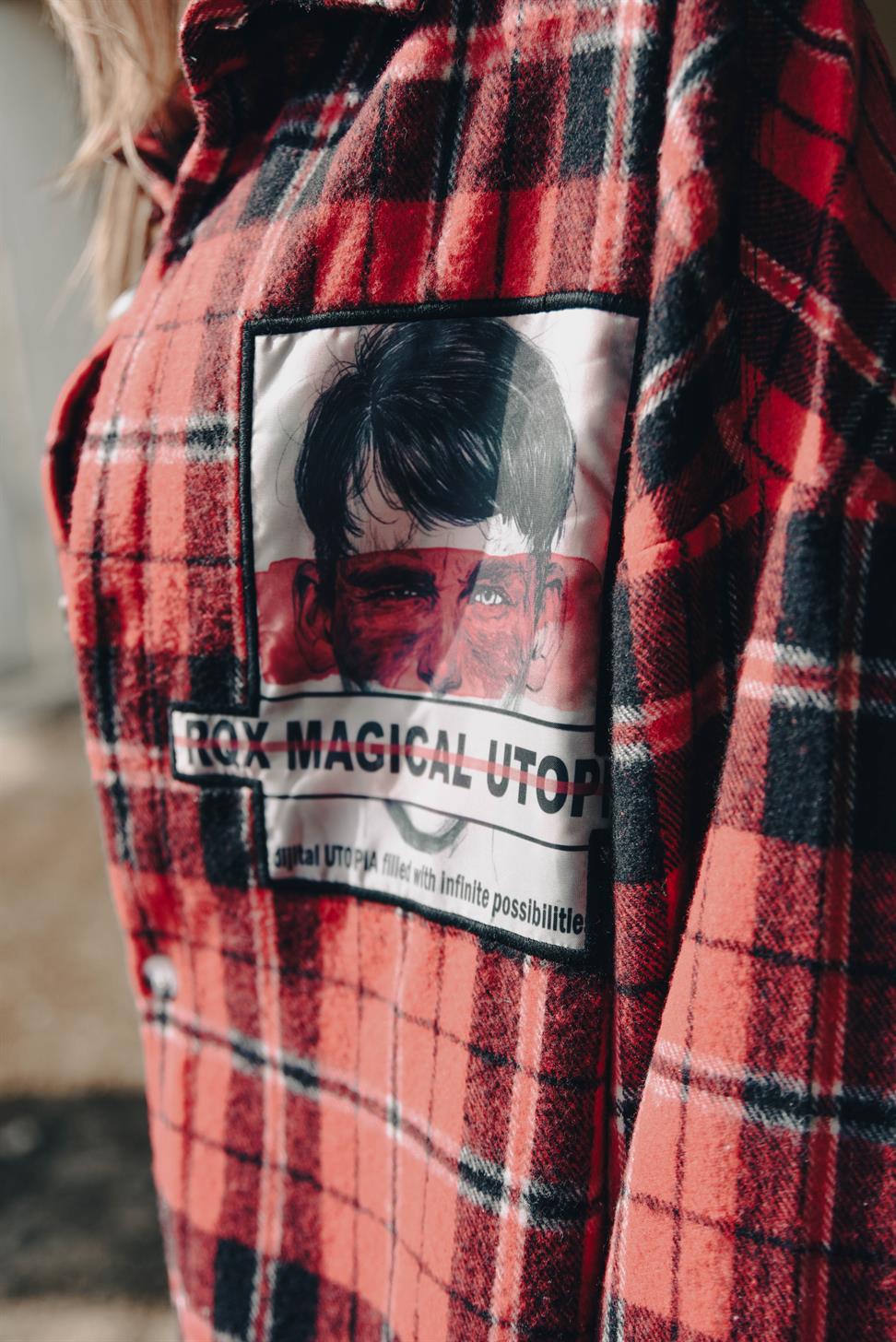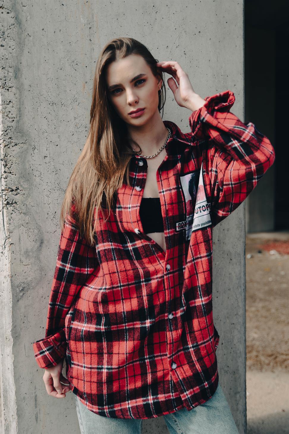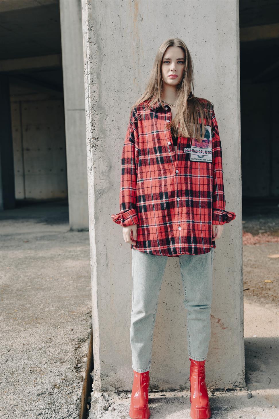 A modern checked shirt with a clean grandad (stand) collar and a subtle patch detail. The mid-weight woven blend balances softness, durability, and shape retention—easy to wear on its own or layered over a tee.