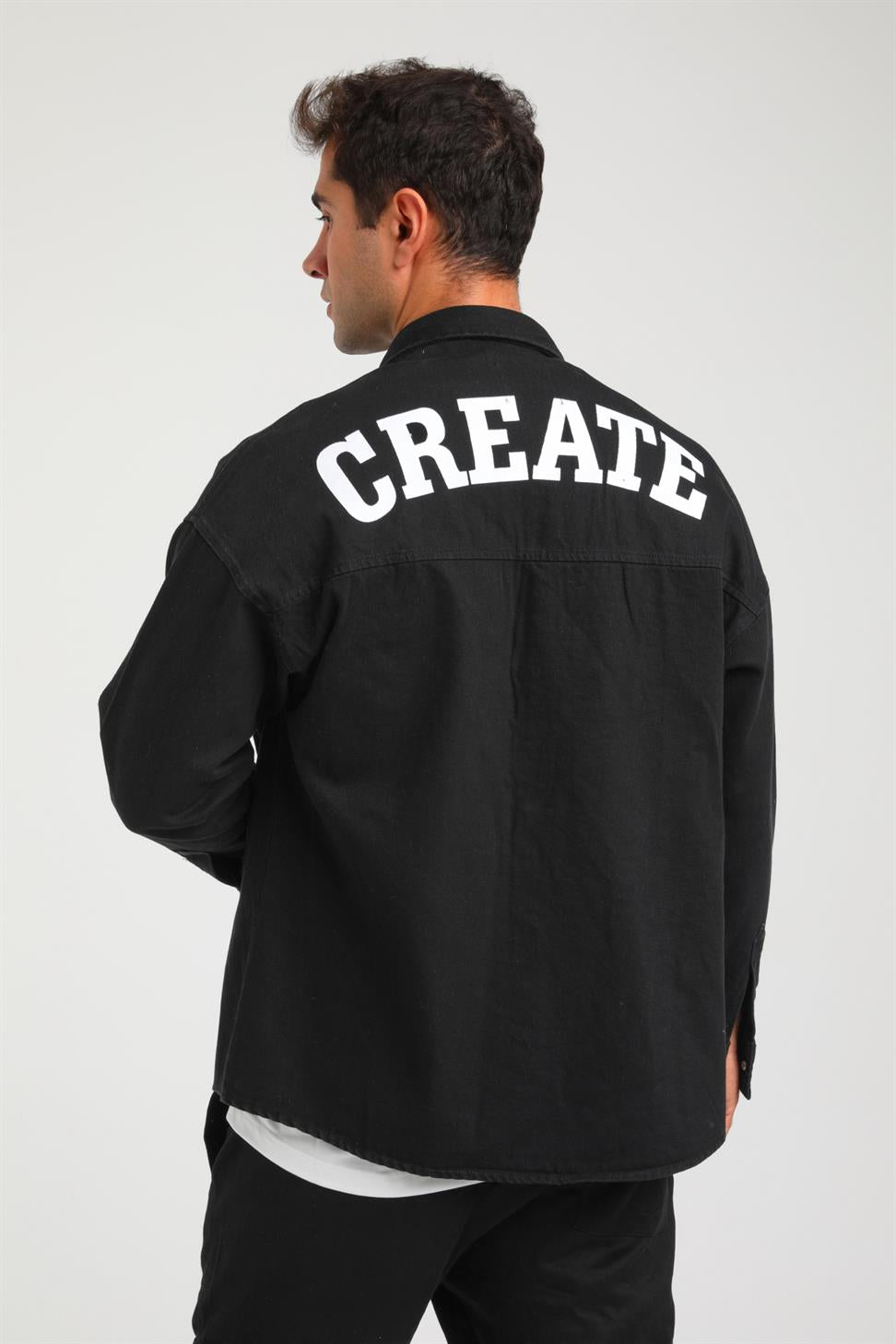 R-3893 Grandad Collar Printed Denim Shirt 100% Cotton