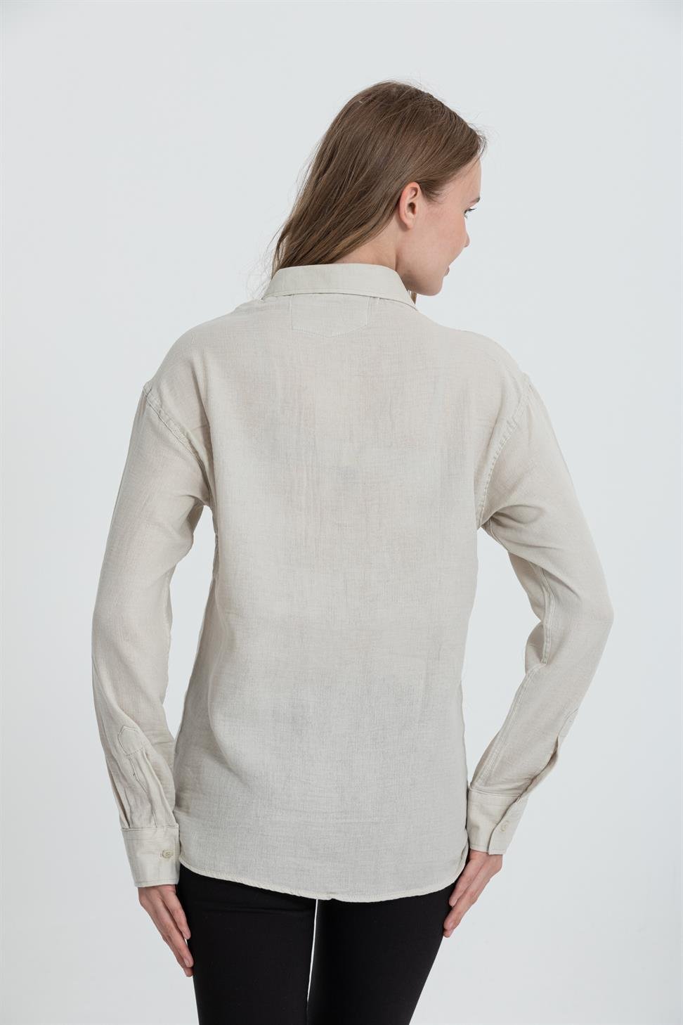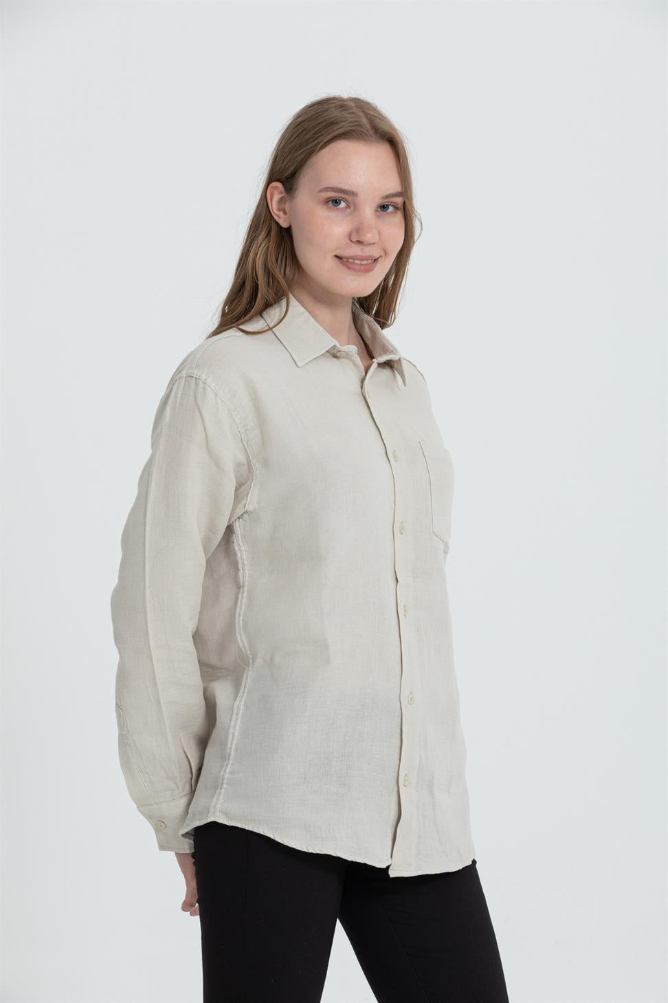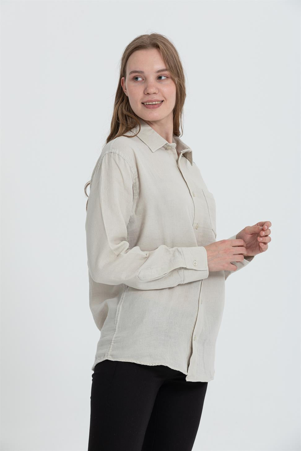 A clean, modern long-sleeve shirt in beige with a grandad (stand) collar and a single chest pocket. Made from 100% polyester for a smooth feel, easy care, and reliable shape retention—smart enough for work, relaxed enough for every day.