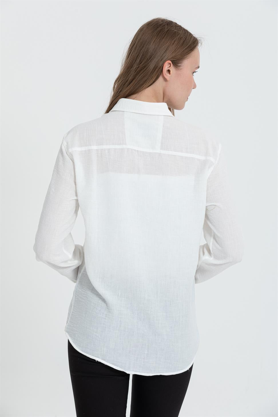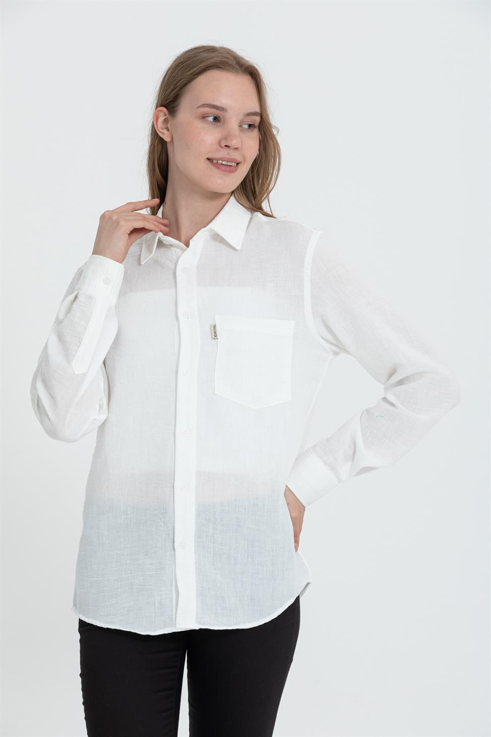 R-3935 Minimal Grandad-Collar Shirt Single Pocket Long Sleeve