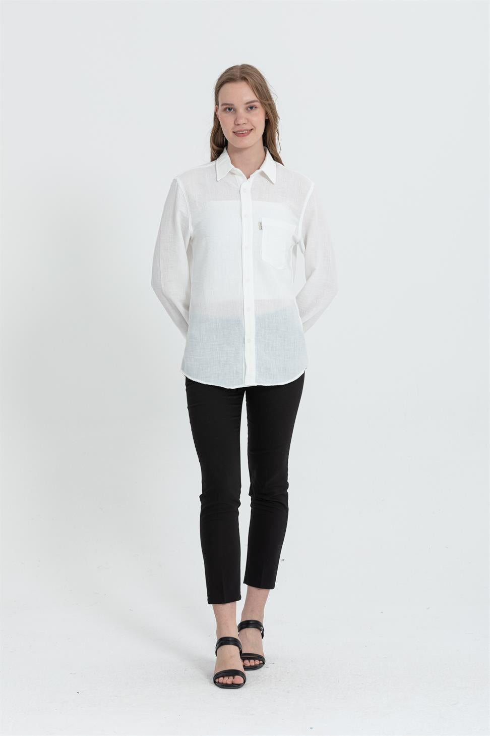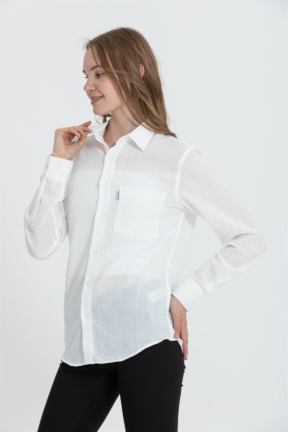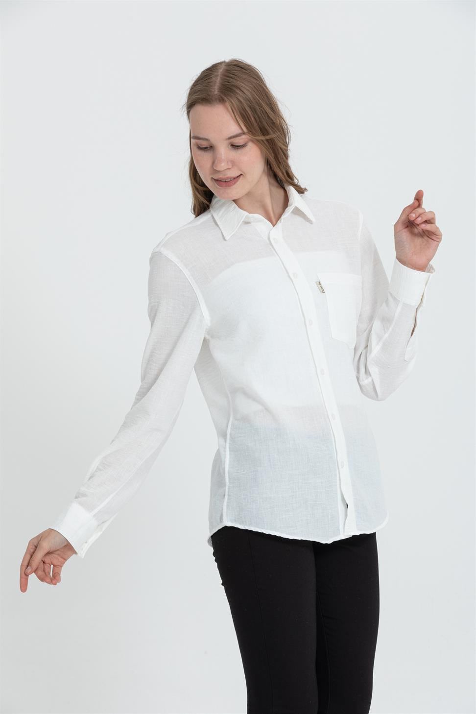 Clean, modern long-sleeve shirt with a grandad (stand) collar and a single chest pocket. Crafted from 100% polyester for a smooth hand feel, easy care, and shape retention. Works for office or off-duty looks—layer under a jacket or wear solo.