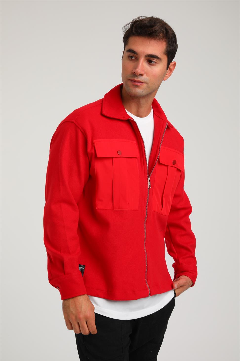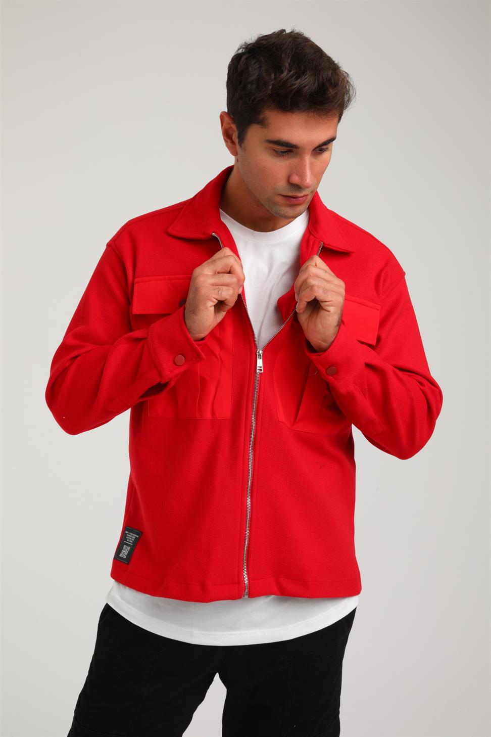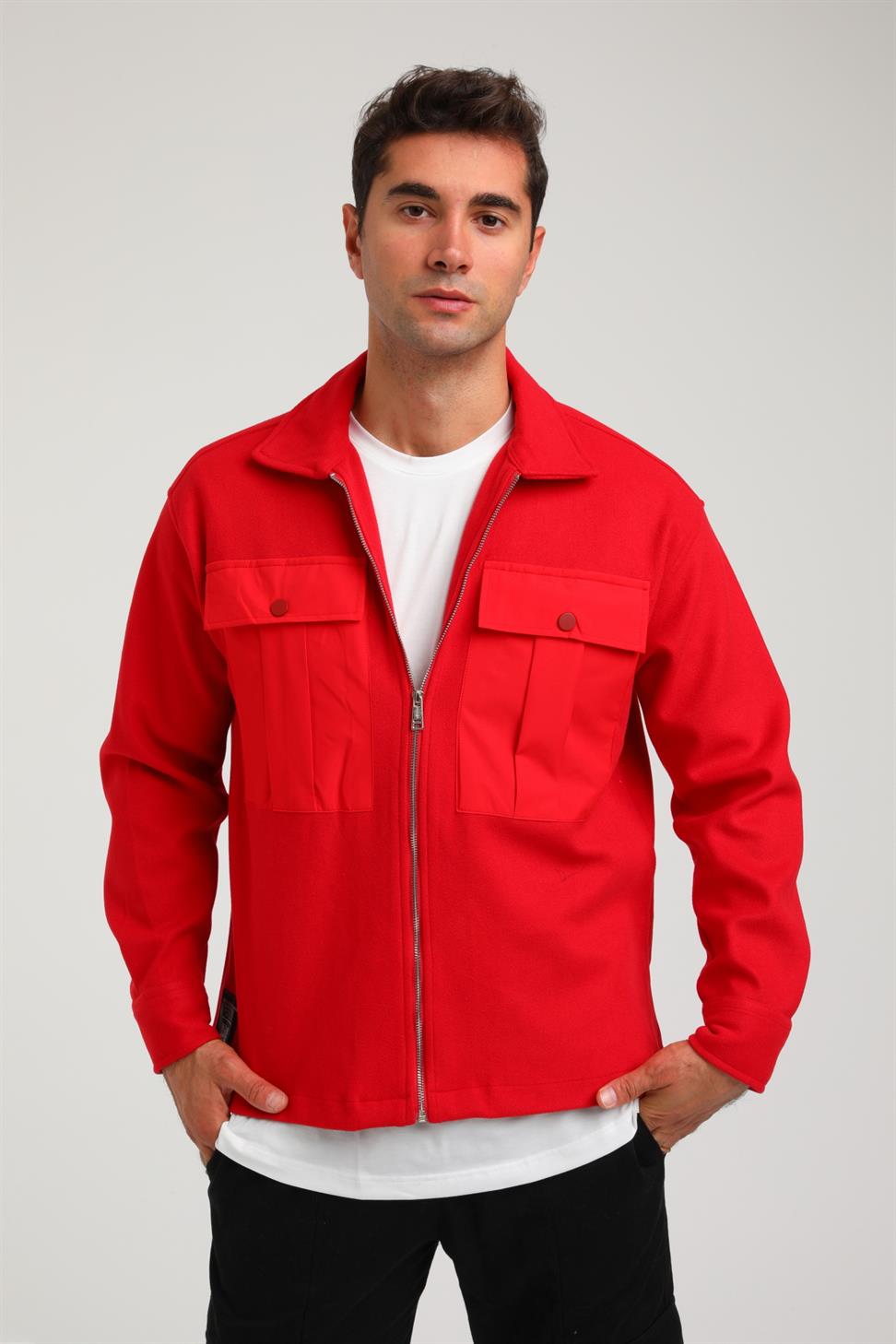 R-3947 Zip-Front Melton-Feel Jacket with Contrast Trim & Dual Pockets