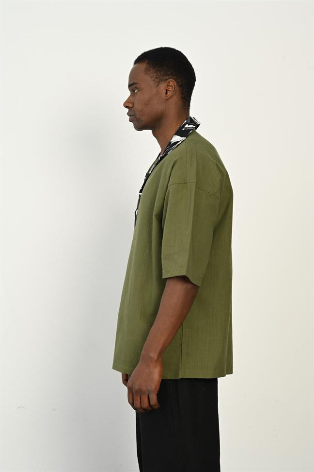 Elevate warm-weather smart-casual. The R-3953 is crafted from 100% cotton-linen woven fabric for airy breathability and a softly textured hand. A neat half-placket collar keeps the look minimal, while the contrast garni trim adds a sharp, tailored accent. Works effortlessly with chinos or denim—on or off duty.