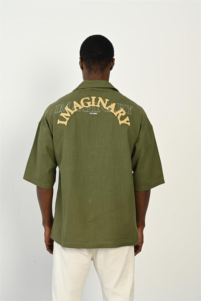 Refined and effortless. The R-3954 shirt is cut from 100% cotton-linen fabric for natural breathability and a textured, lightweight feel. A clean button-front and classic collar keep it smart, while the back “Imaginary/Imagınary” embroidery adds a subtle statement. Pair with chinos or denim for workdays, weekends, and warm-weather evenings.