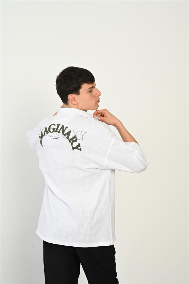 Refined and effortless. The R-3954 shirt is cut from 100% cotton-linen fabric for natural breathability and a textured, lightweight feel. A clean button-front and classic collar keep it smart, while the back “Imaginary/Imagınary” embroidery adds a subtle statement. Pair with chinos or denim for workdays, weekends, and warm-weather evenings.