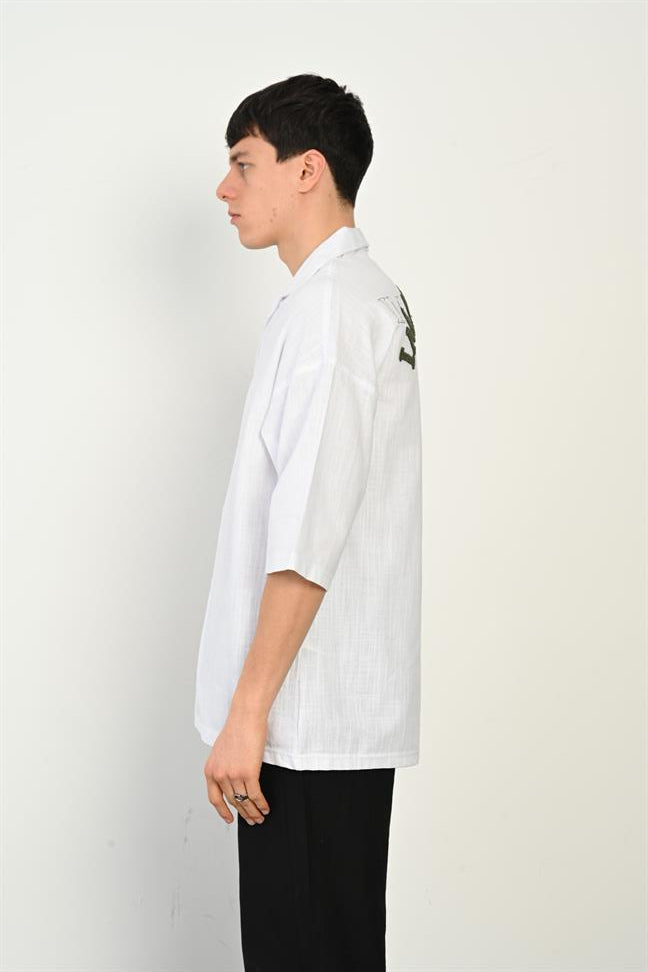 R-3954 R-3954 Button-Front Linen Shirt – 100% Cotton-Linen, Back Embroidery