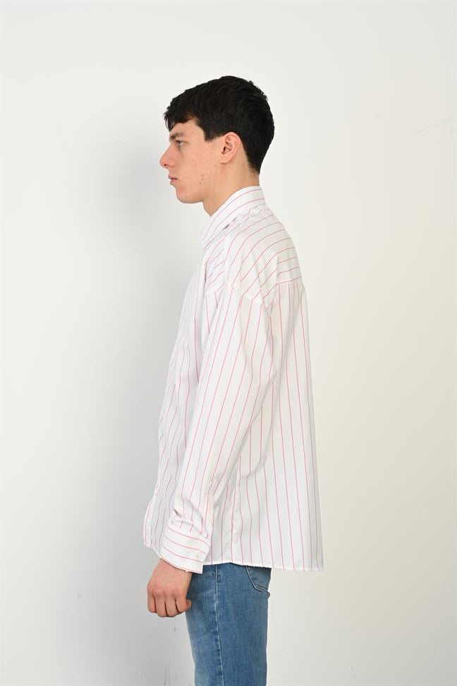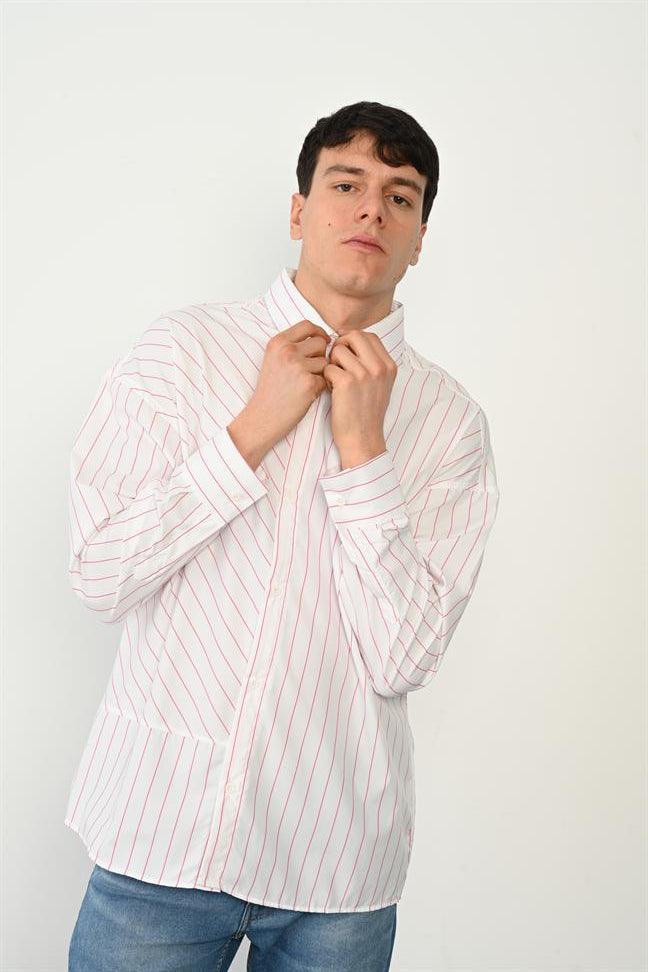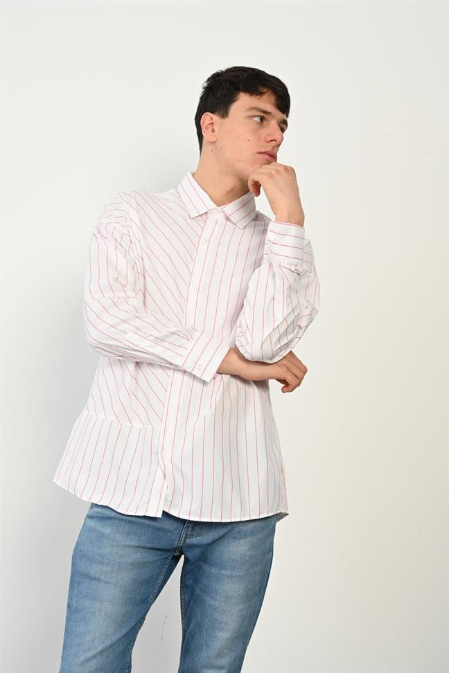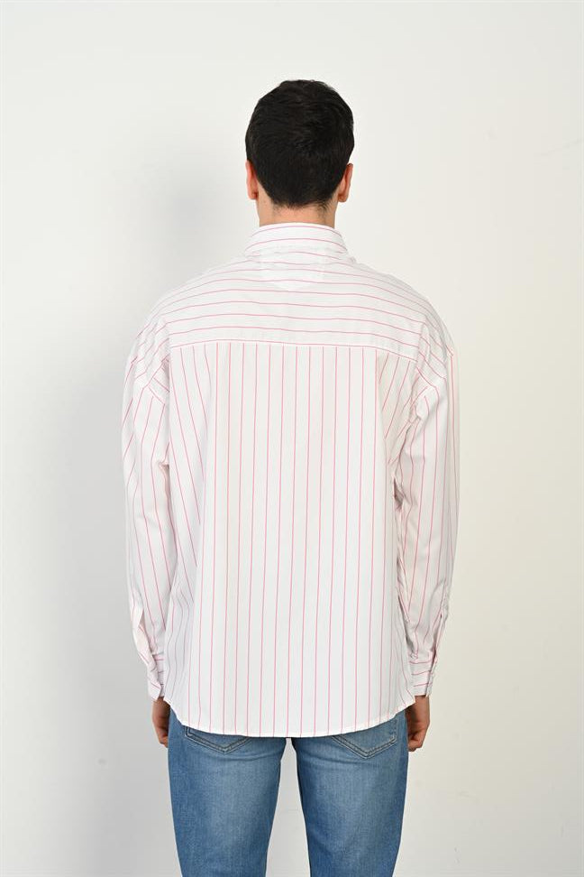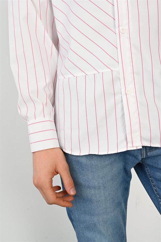 R-3962 Modern Striped Button-Front Shirt Stand Collar