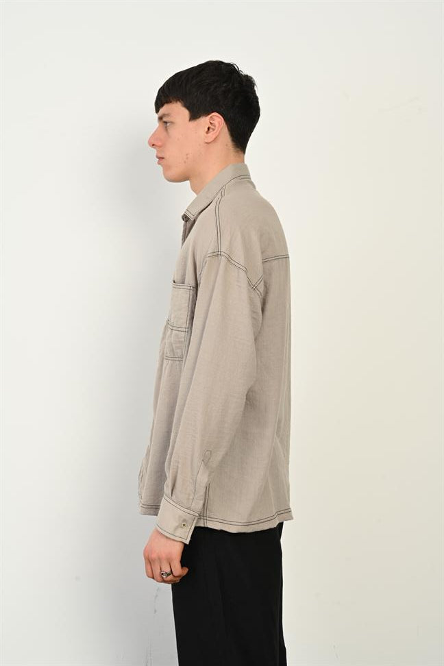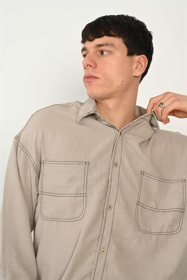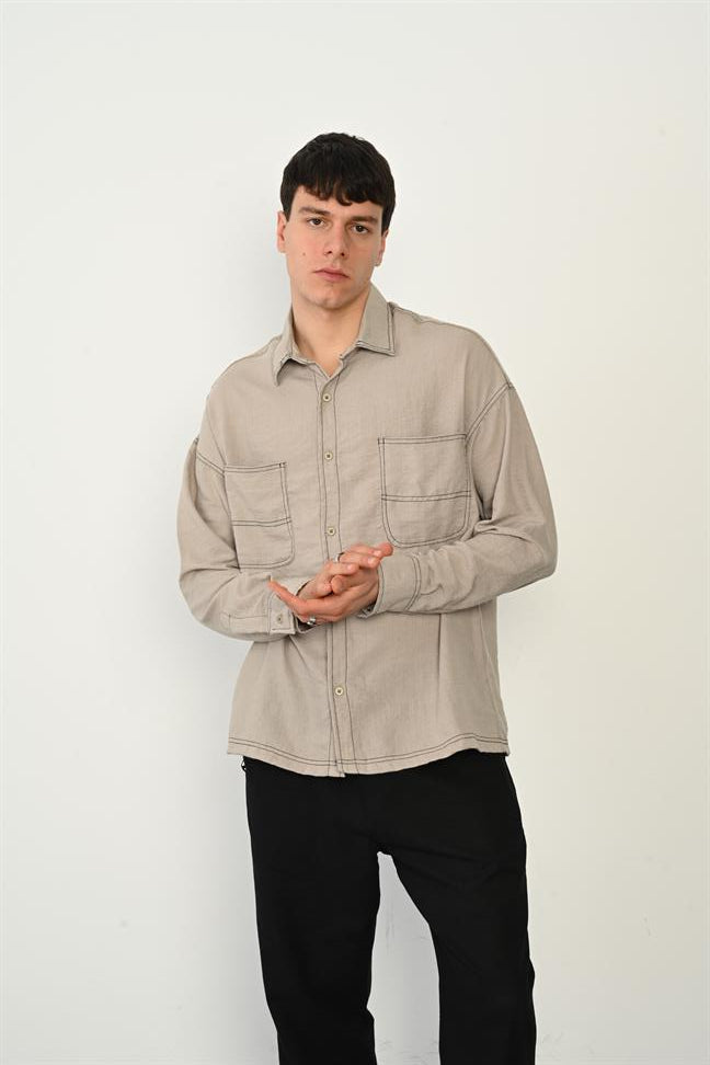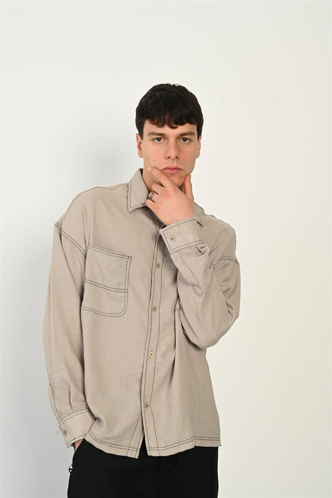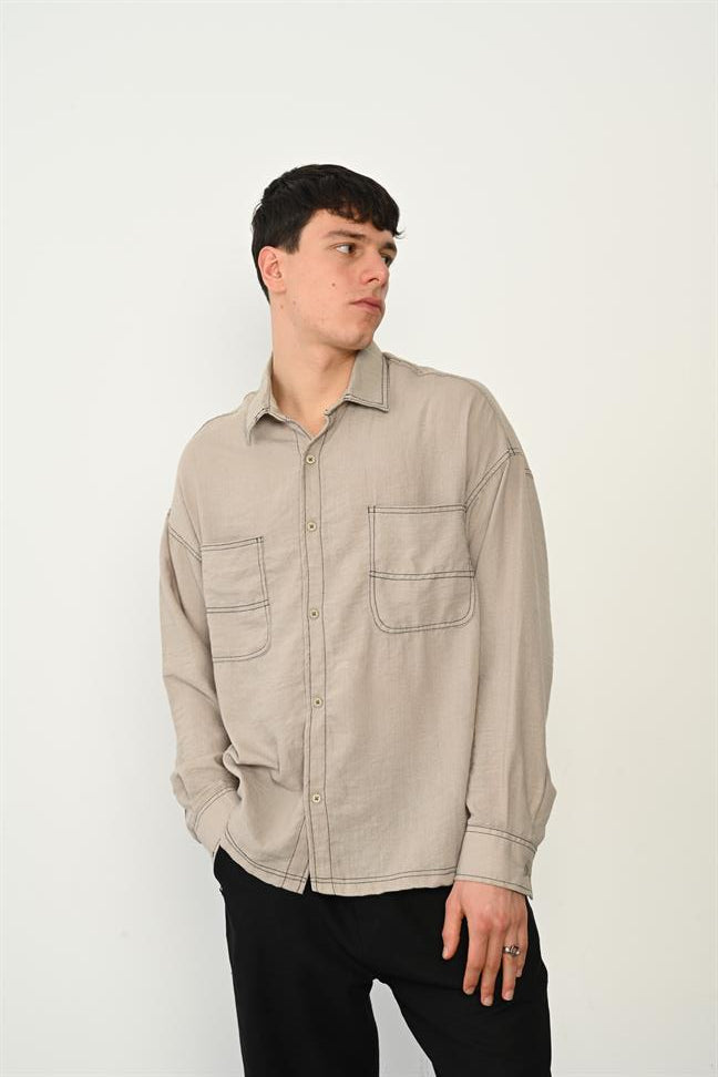 X-1004 Oversized Sweatshirt with Zipped Pocket – Beige | 3-Thread Brushed Fleece