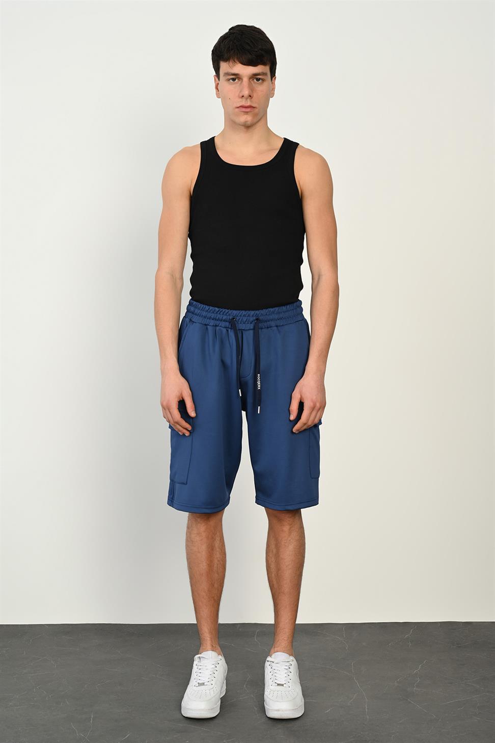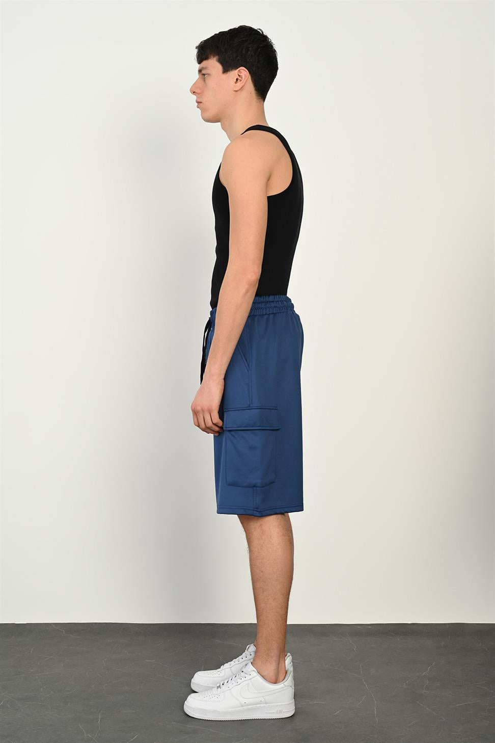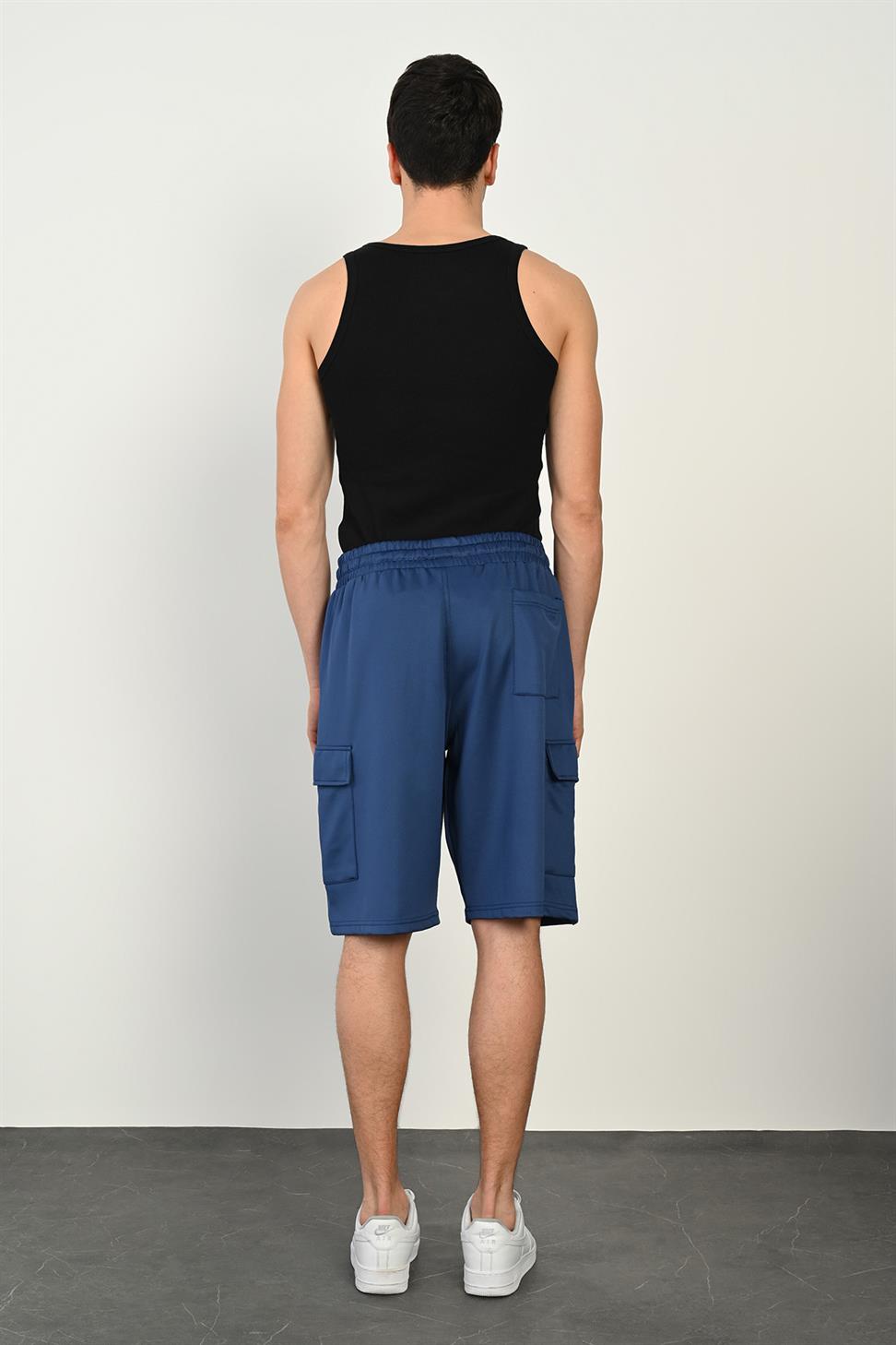 R-4374 Elastic Waist Cargo Pocket Scuba Shorts – Navy Blue