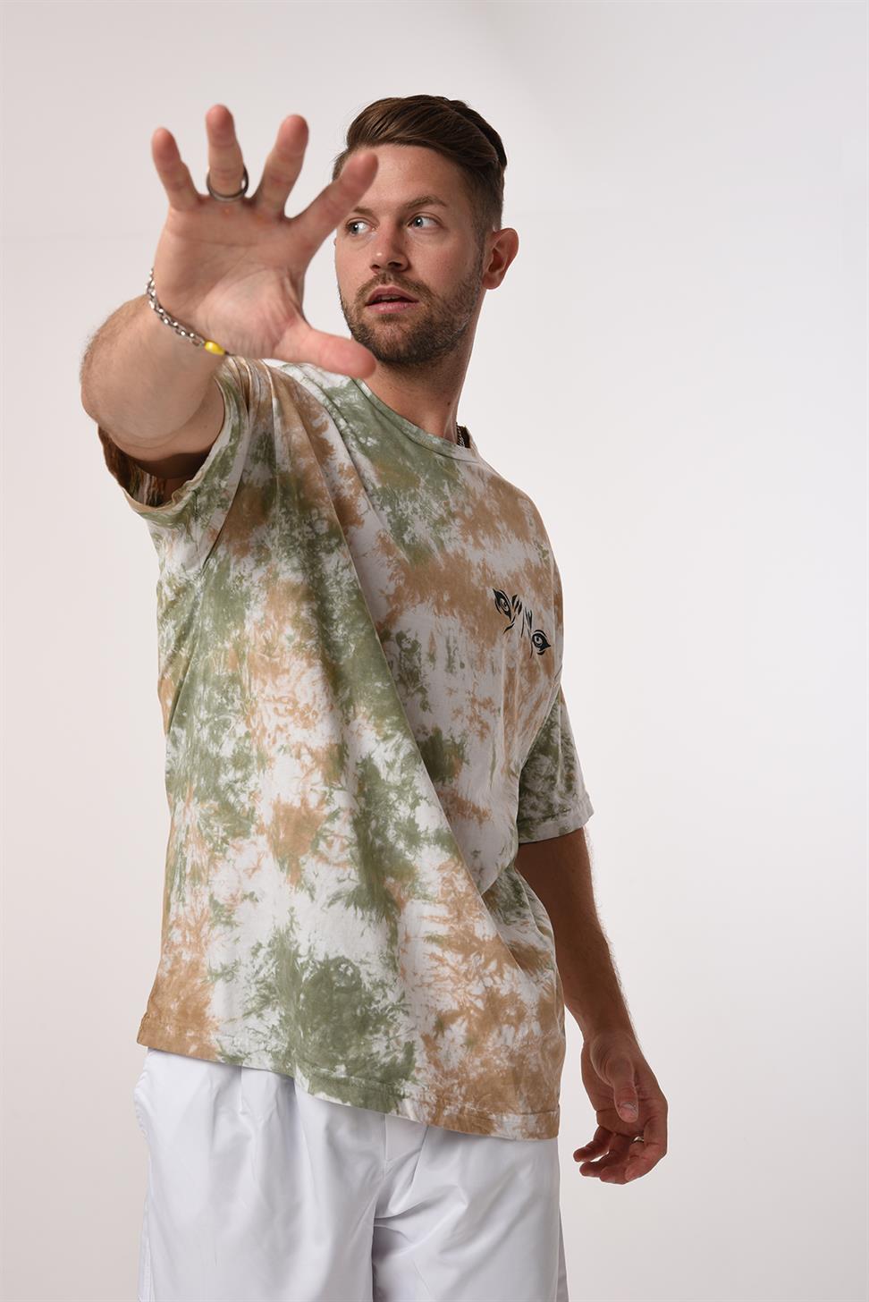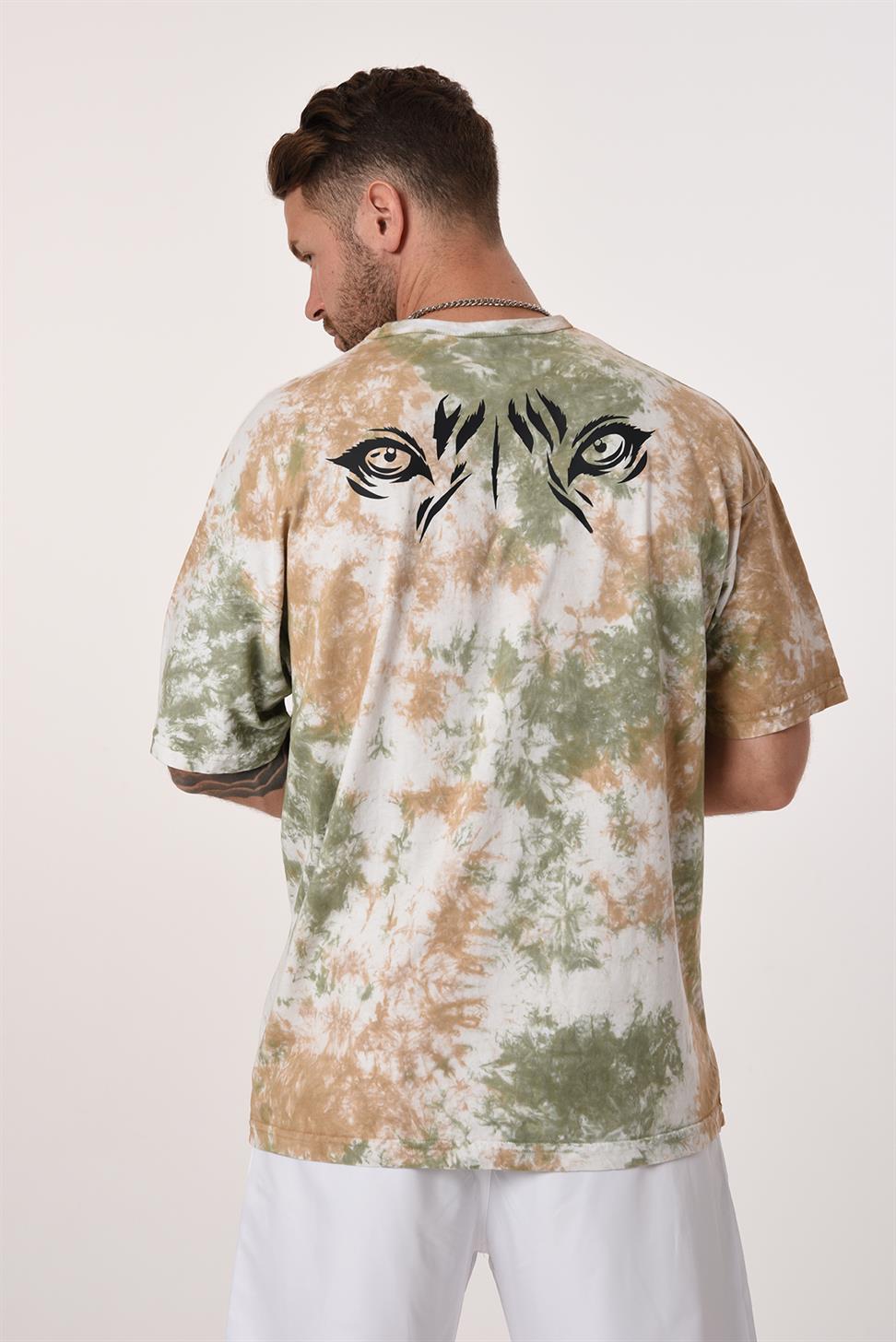 R-5656 Bisiklet Yaka Arka Ve Ön Göz Baskılı Batik T-shırt