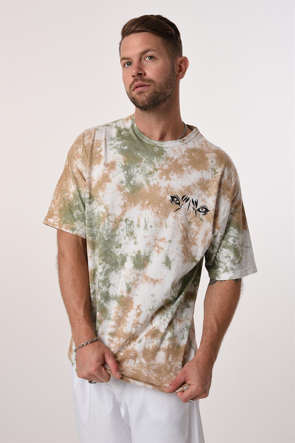Bisiklet Yaka Arka Ve Ön Göz Baskılı Batik T-shırt