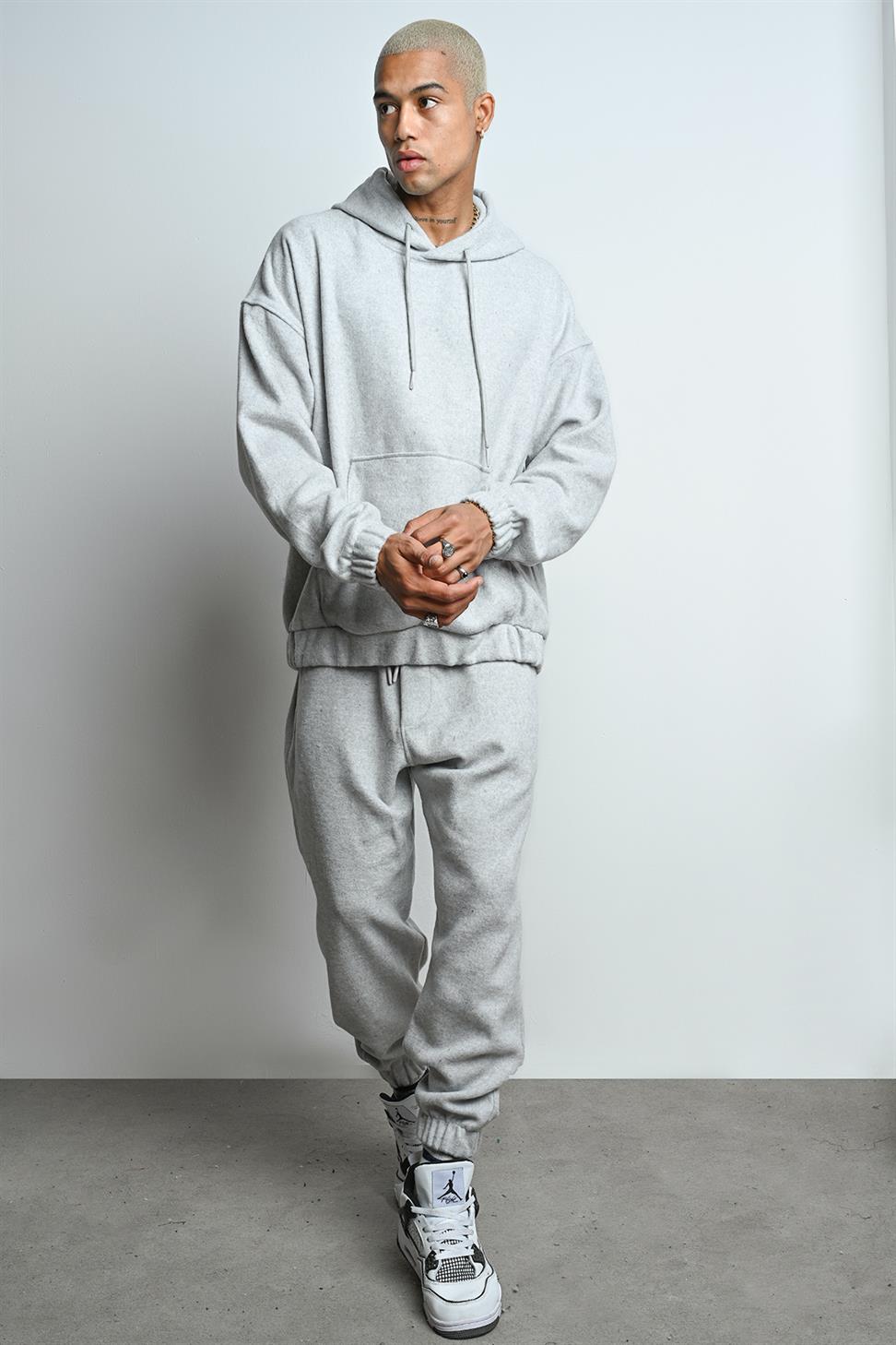 R-5673/4283 Grey Kangaroo Pocket Elastic Hem Fleece Set