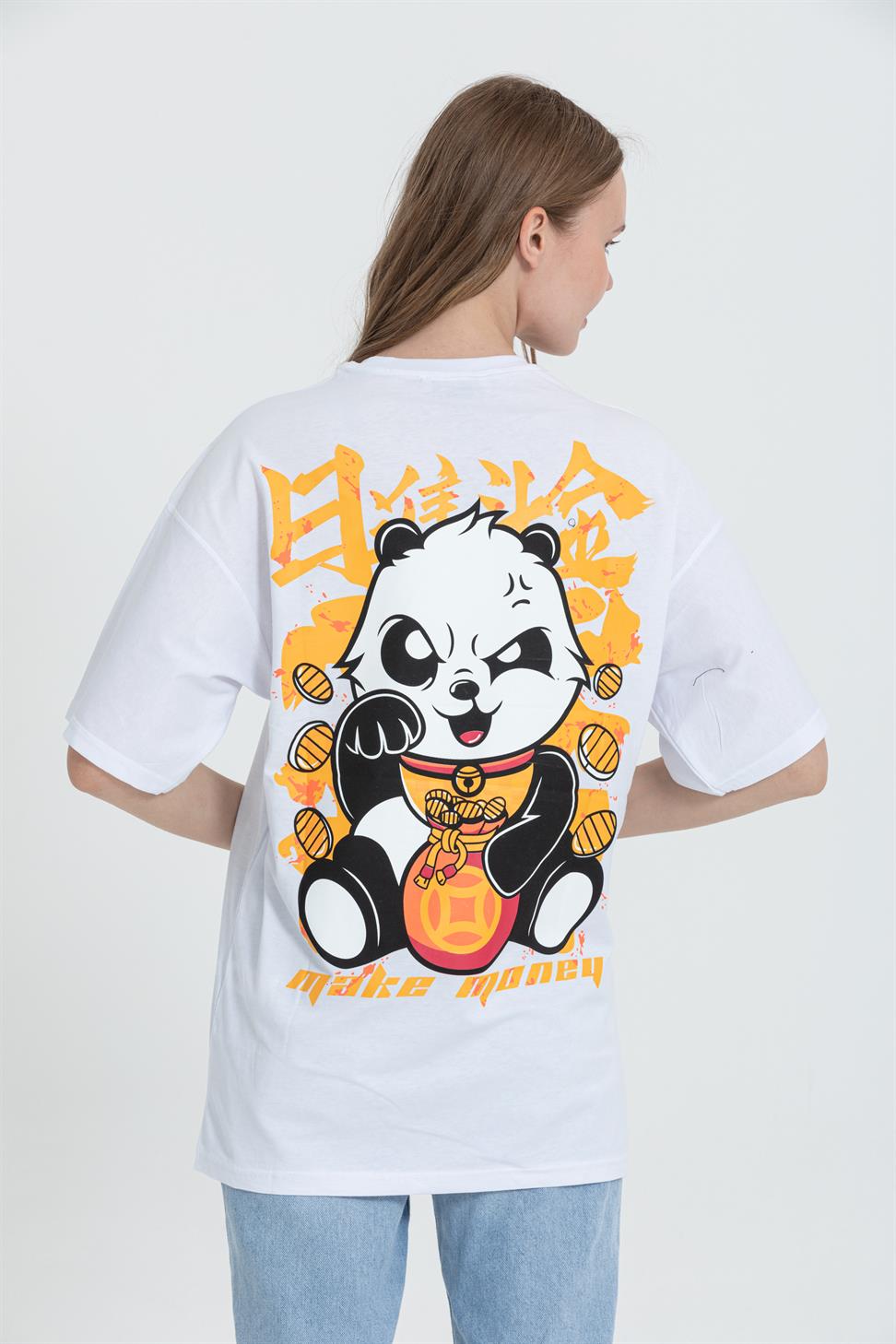 A relaxed, street-ready oversized tee with a playful panda graphic. Cut from soft, breathable 100% cotton single-jersey with a clean crew neck and dropped shoulders for an easy drape. Pairs effortlessly with denim, cargos, or shorts.