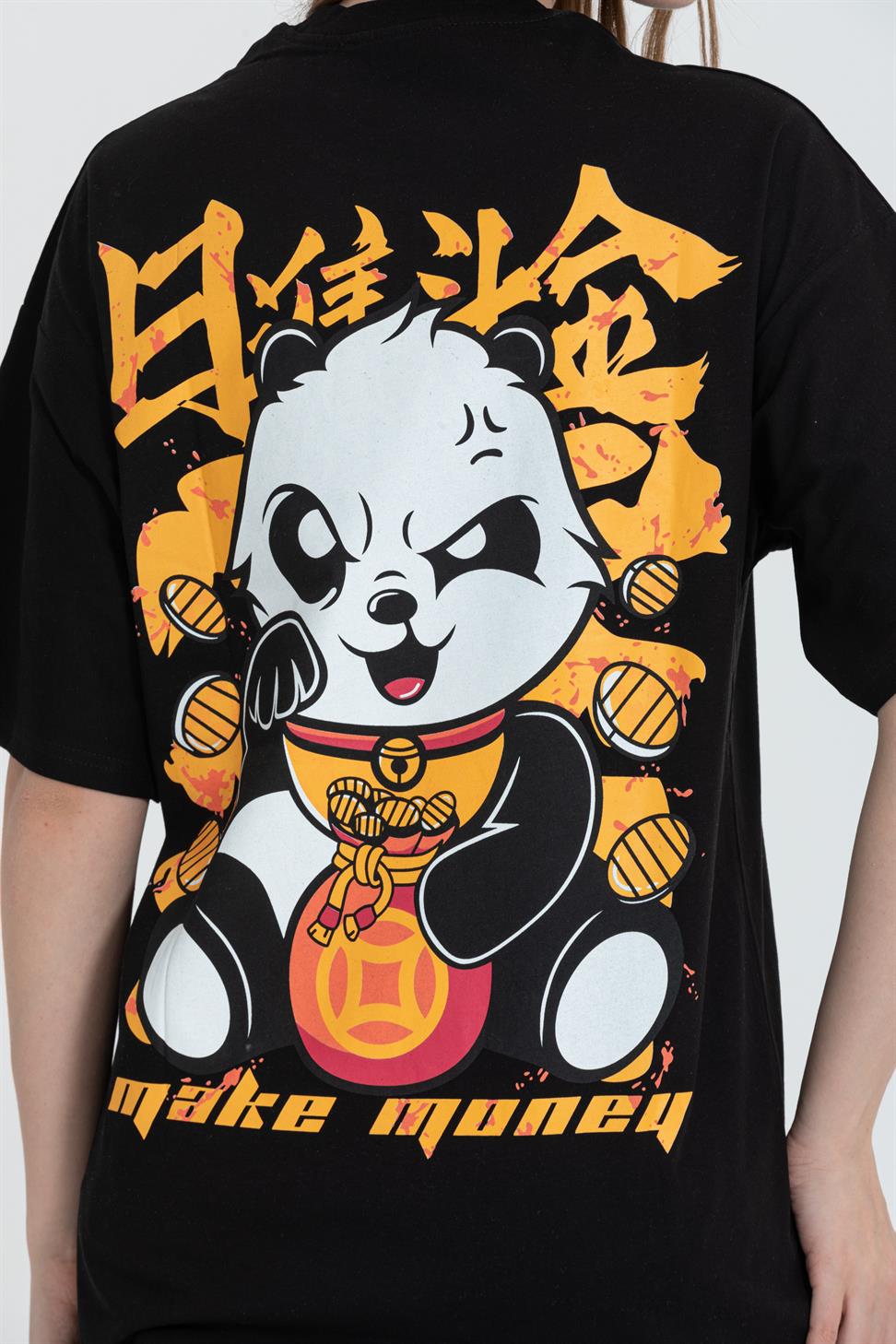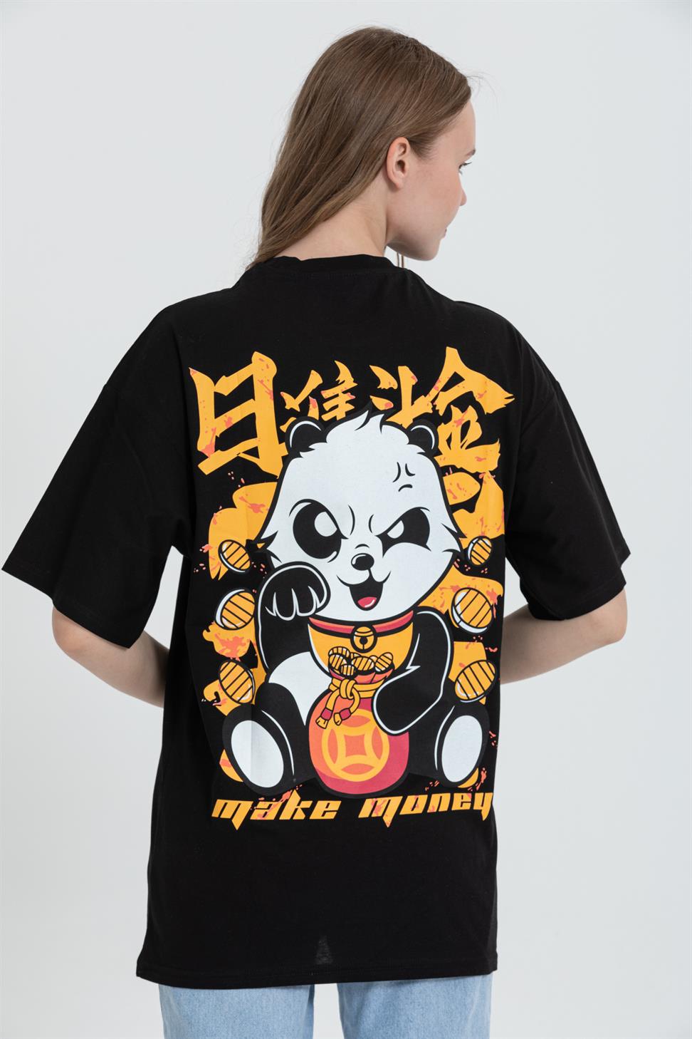 R-5724 Oversized Panda Print T-Shirt 100% Cotton Crew Neck
