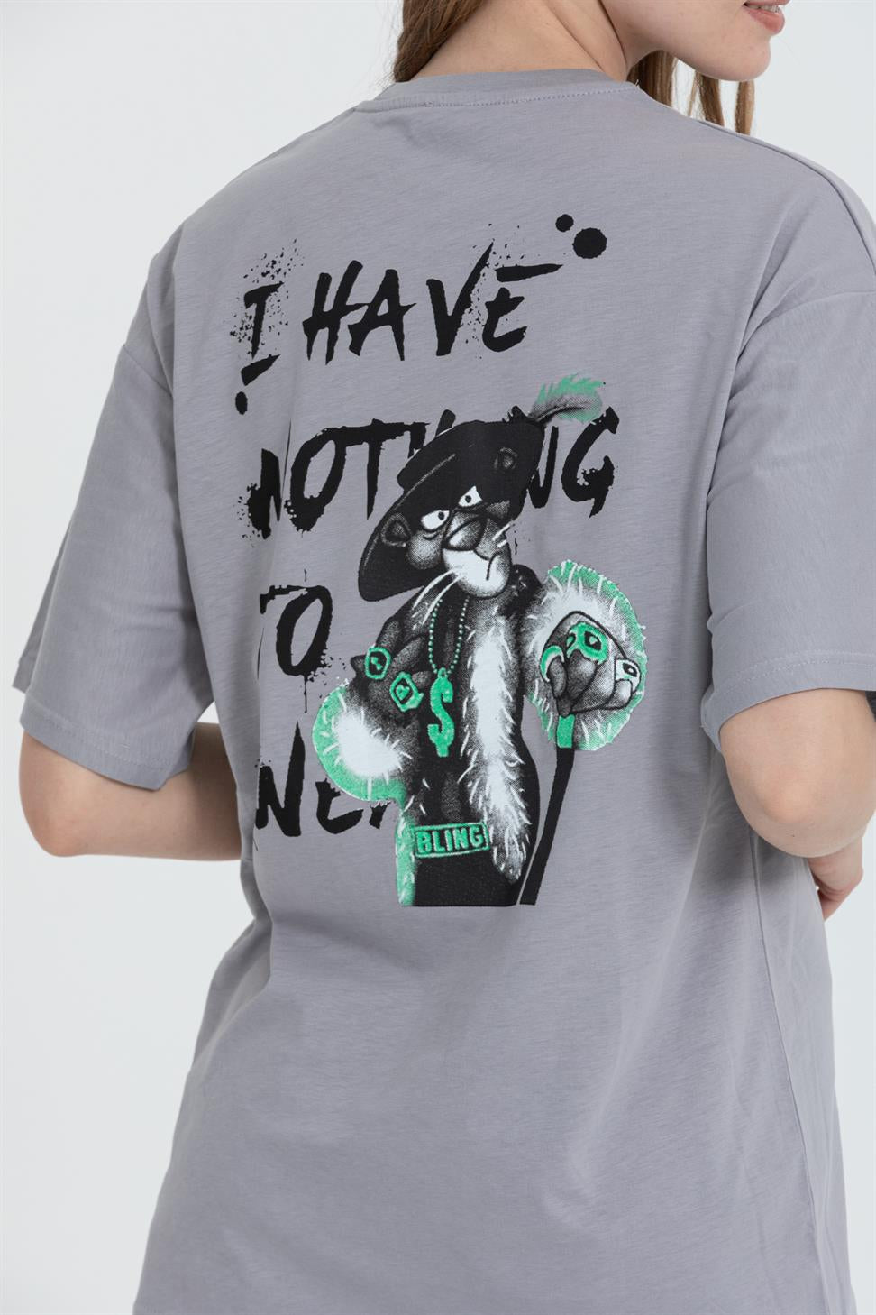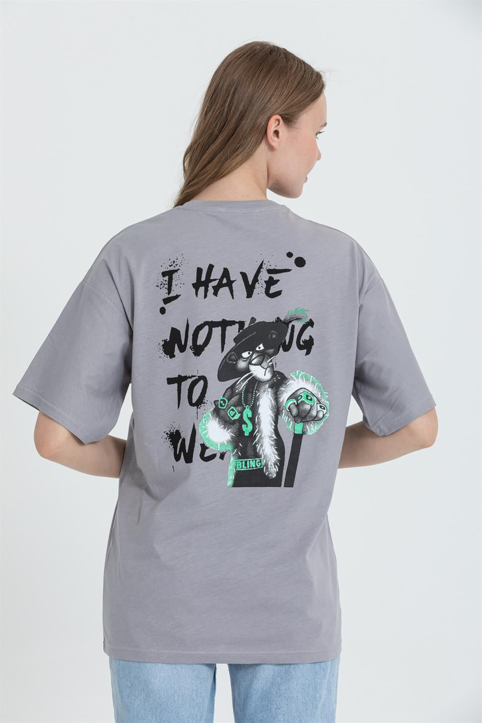 R-5737 Oversized Panther Back Print T-Shirt 100% Cotton Crew Neck