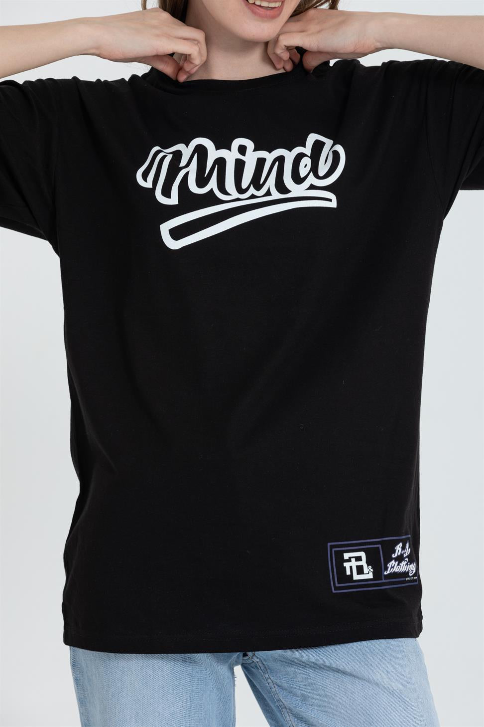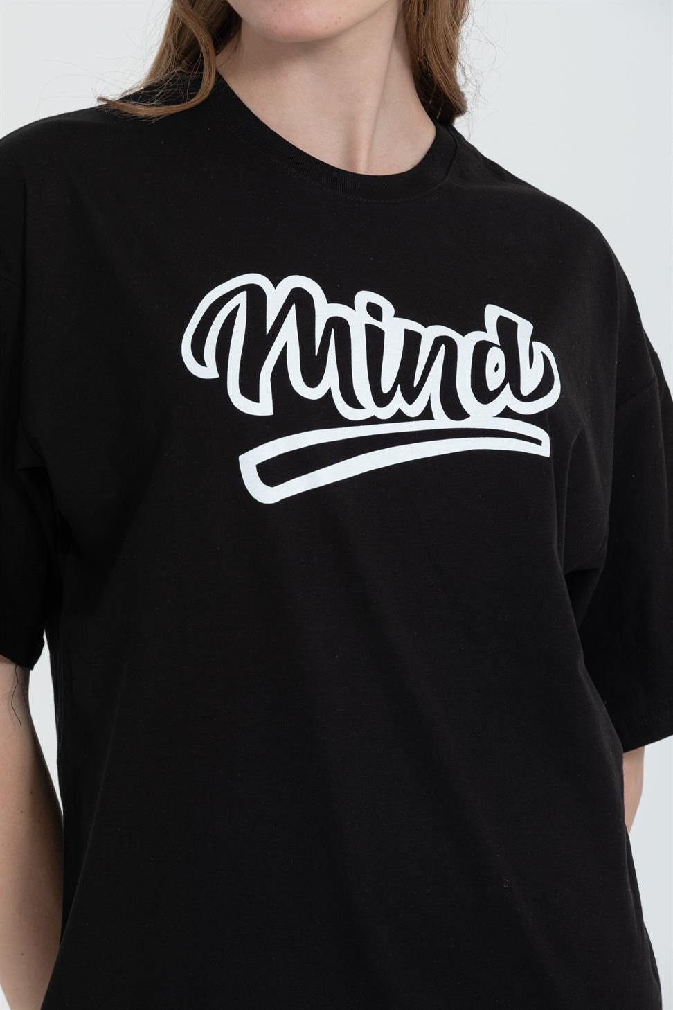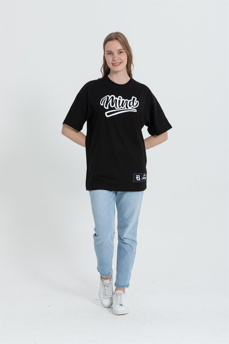 A street-ready oversized tee in black with a bold “MIND” graphic. Cut from soft, breathable 100% cotton single-jersey with dropped shoulders for a relaxed drape. Easy with denim or cargos; layer under a jacket year-round.