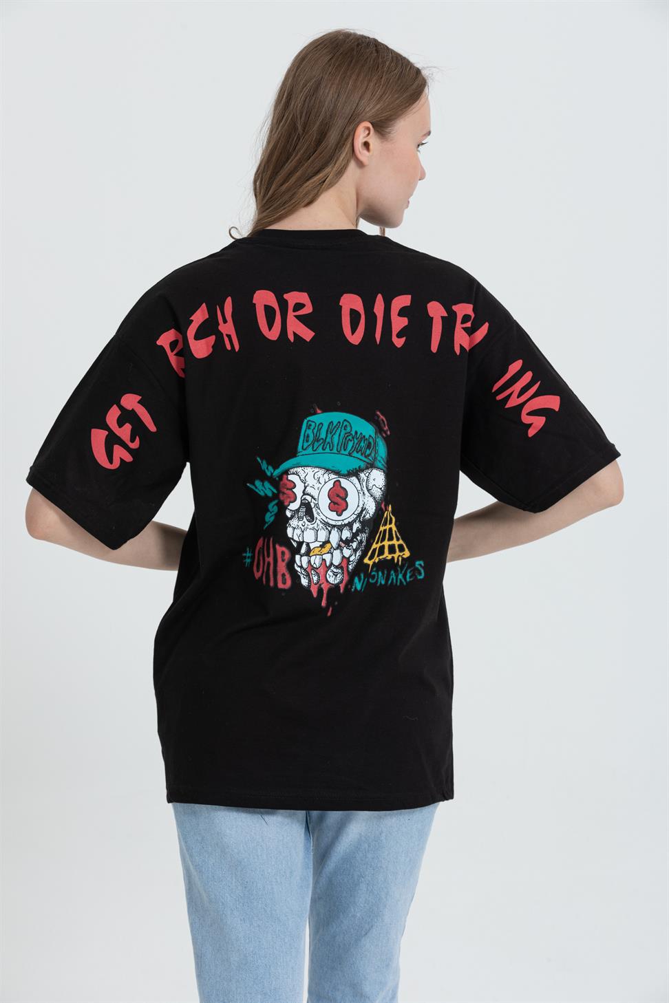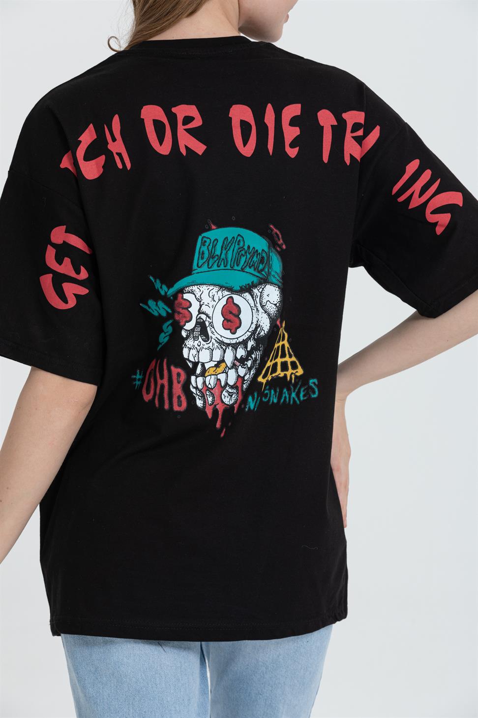 R-5741 Oversized Skull Back Print T-Shirt Black 100% Cotton