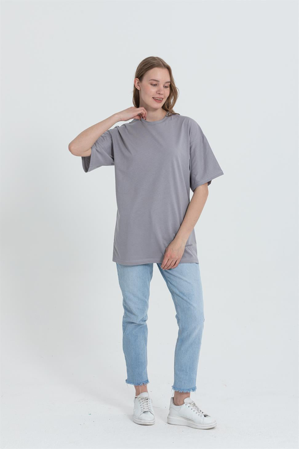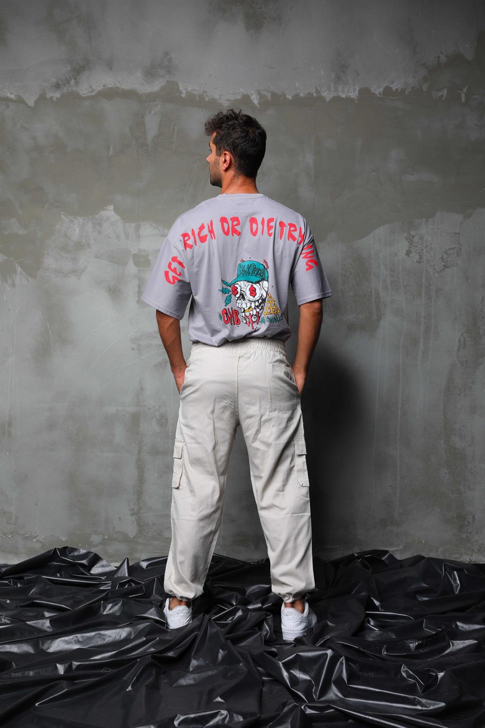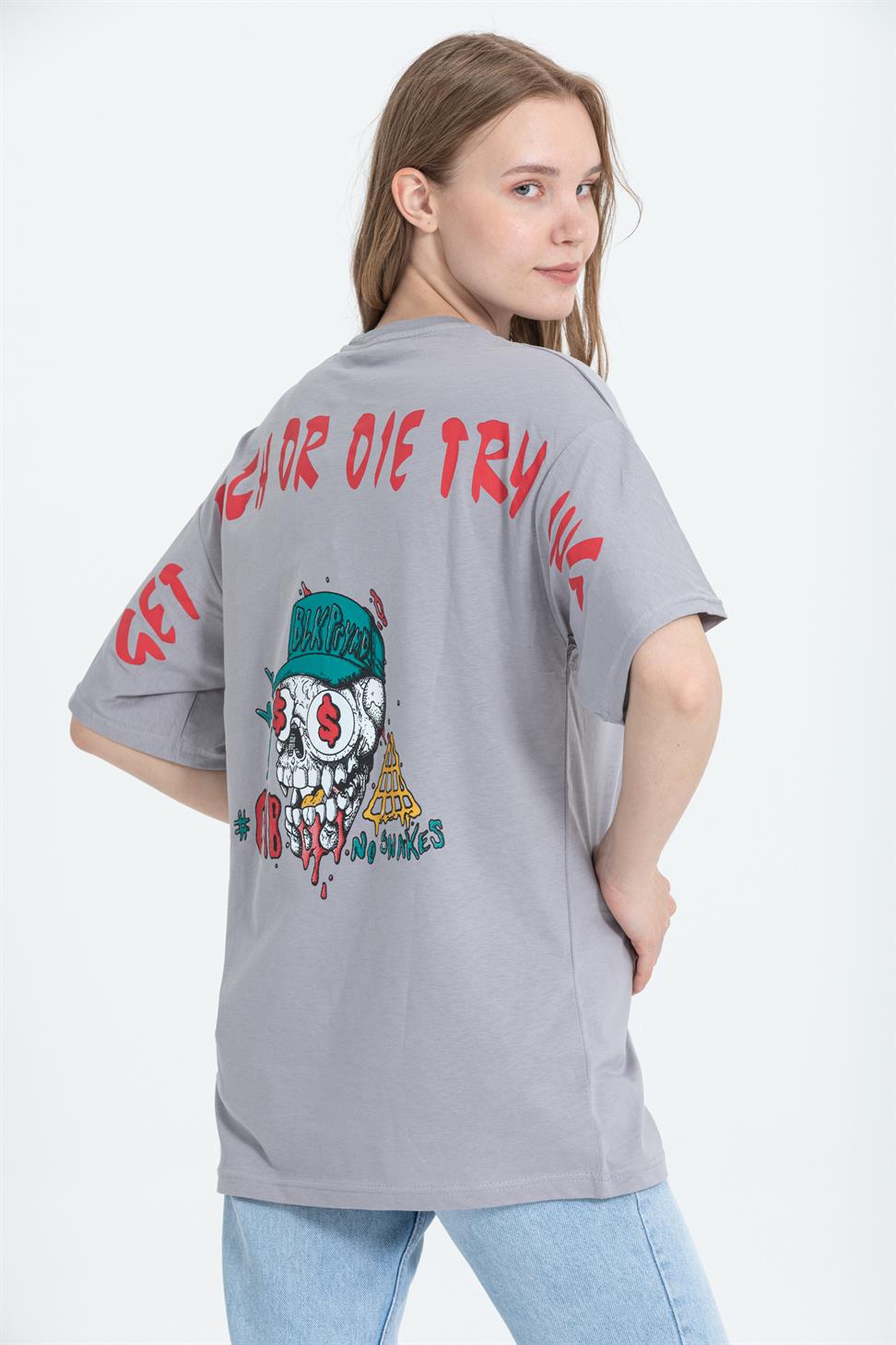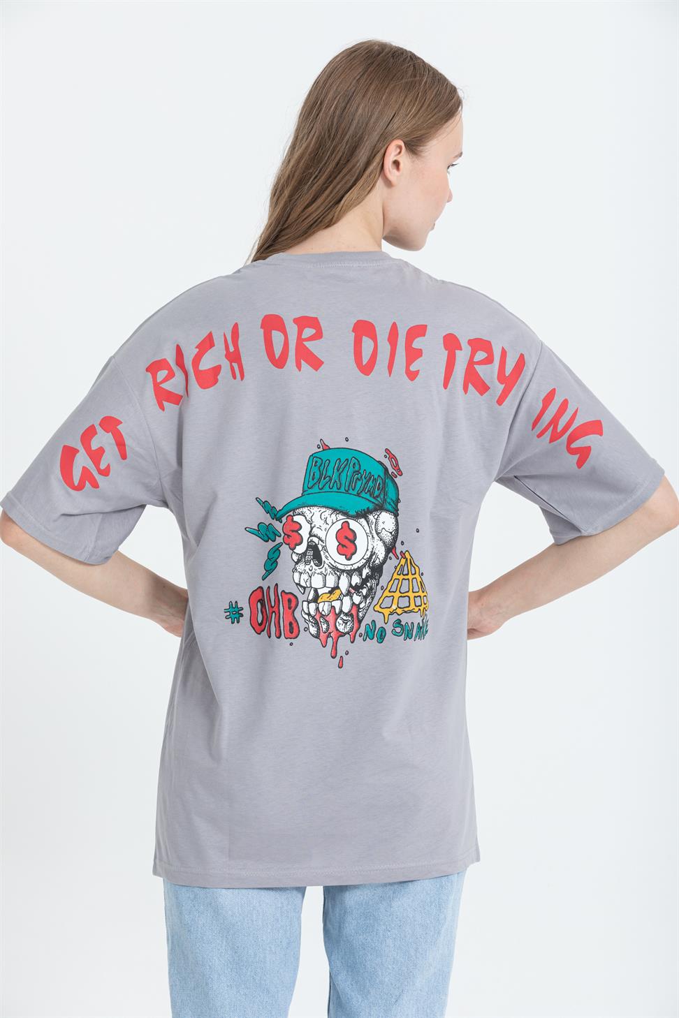 R-574 1Oversized Skull Back Print T-Shirt Grey 100% Cotton