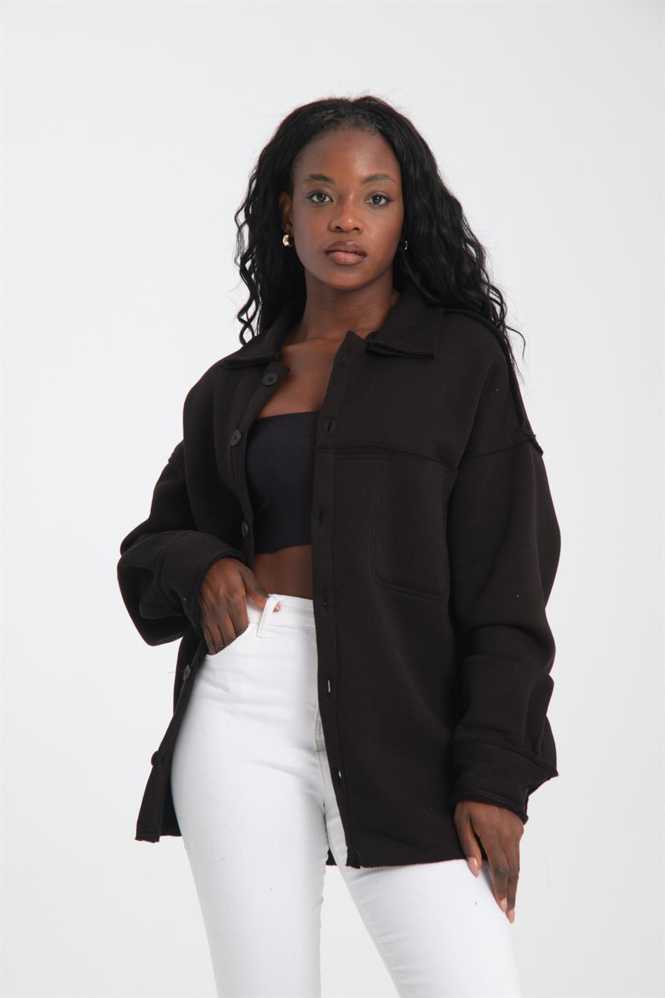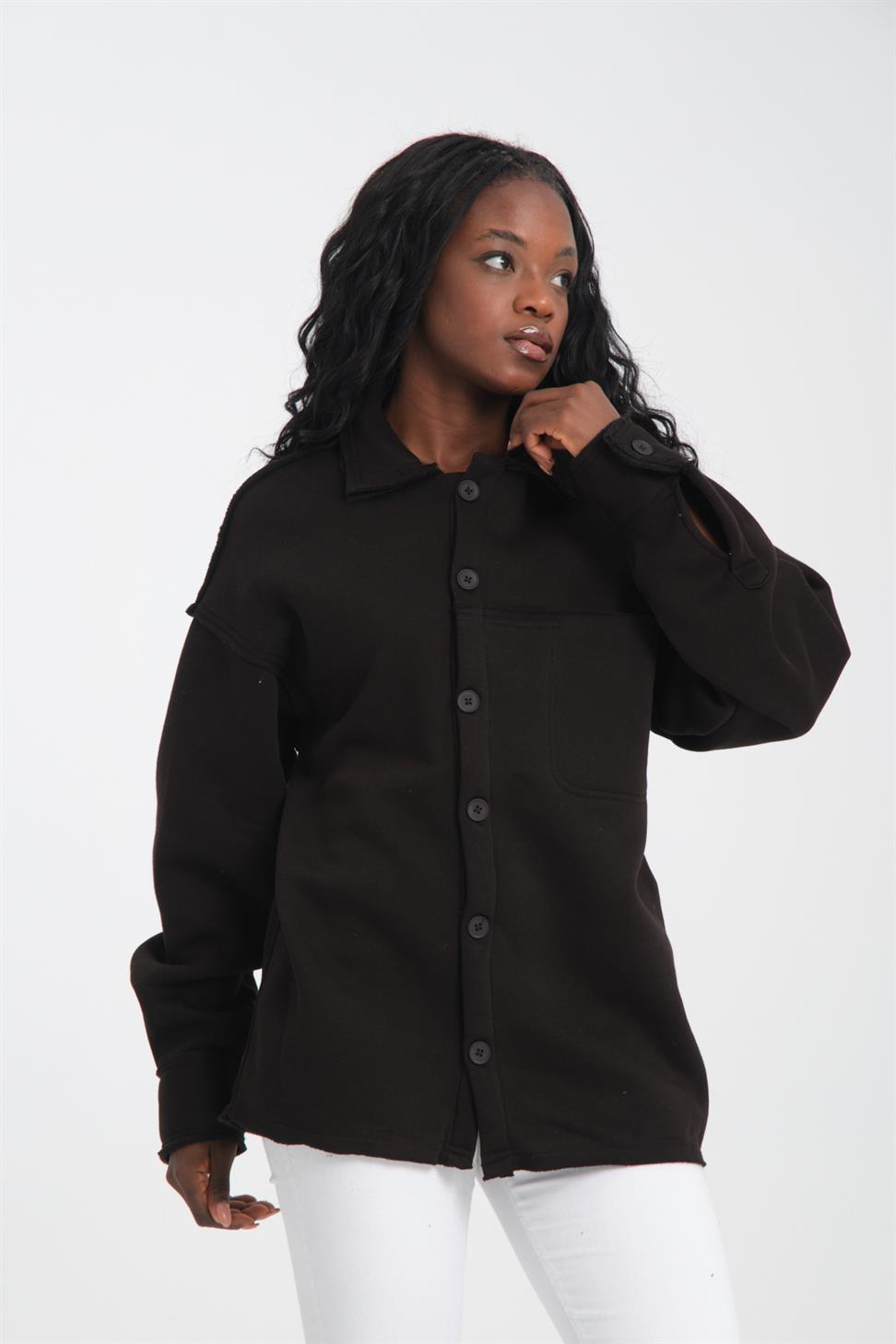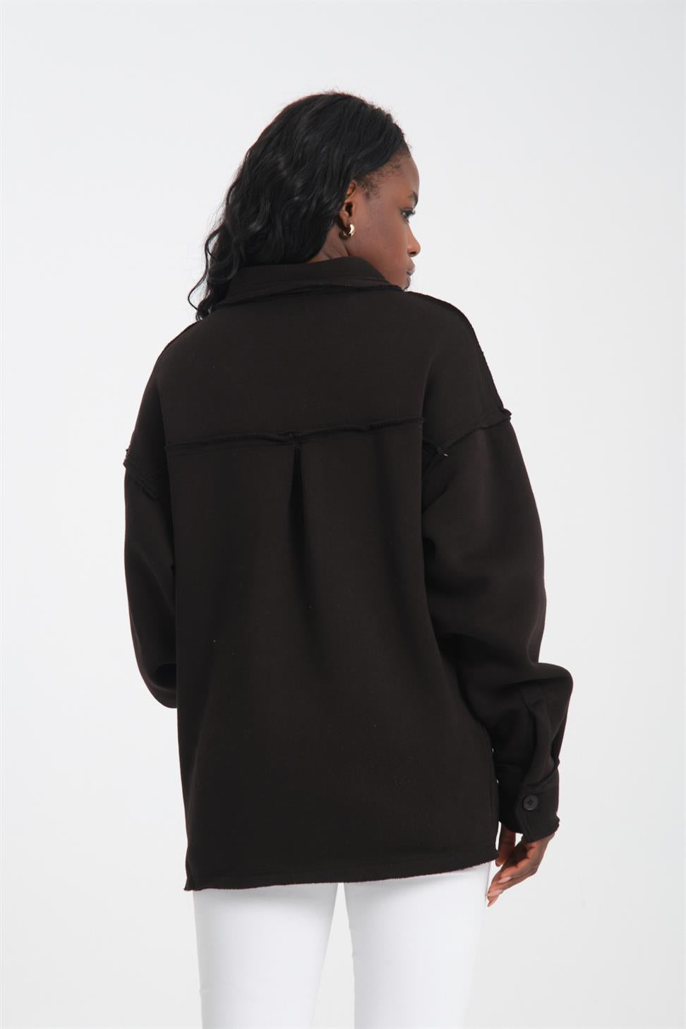Elevate your casual style with this jacket collar sweatshirt featuring trendy raw seam details. Crafted from soft fleece fabric, it offers warmth, comfort, and a modern look for everyday wear. Perfect for pairing with jeans or joggers for a stylish off-duty outfit.