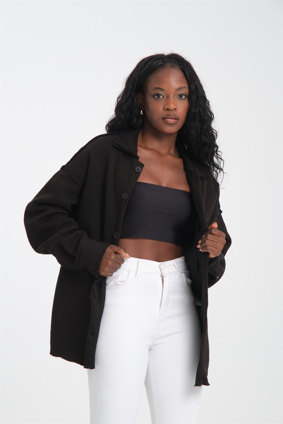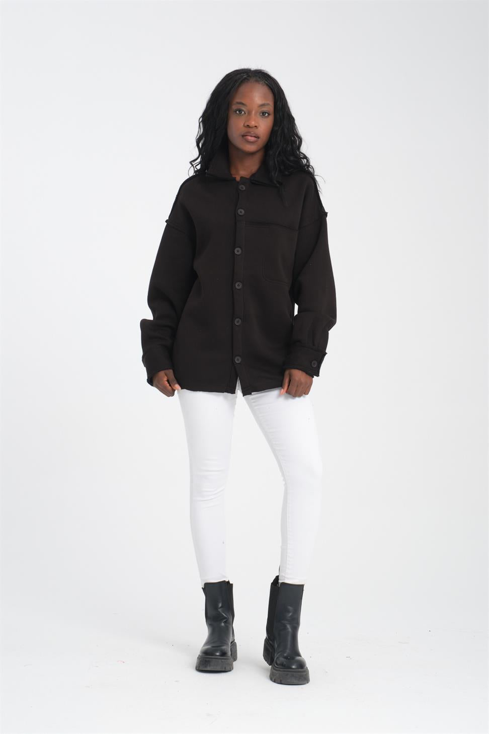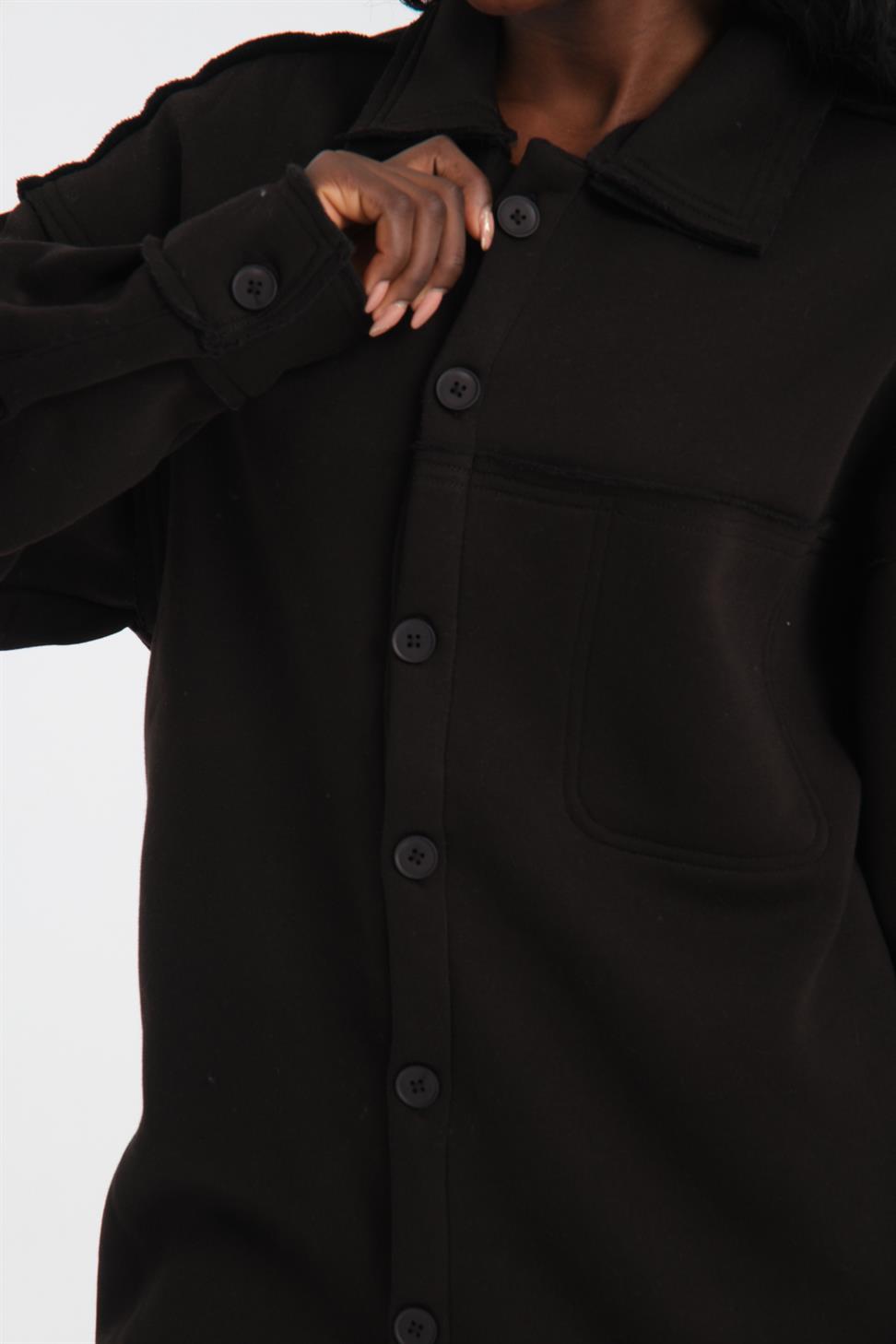 Elevate your casual style with this jacket collar sweatshirt featuring trendy raw seam details. Crafted from soft fleece fabric, it offers warmth, comfort, and a modern look for everyday wear. Perfect for pairing with jeans or joggers for a stylish off-duty outfit.