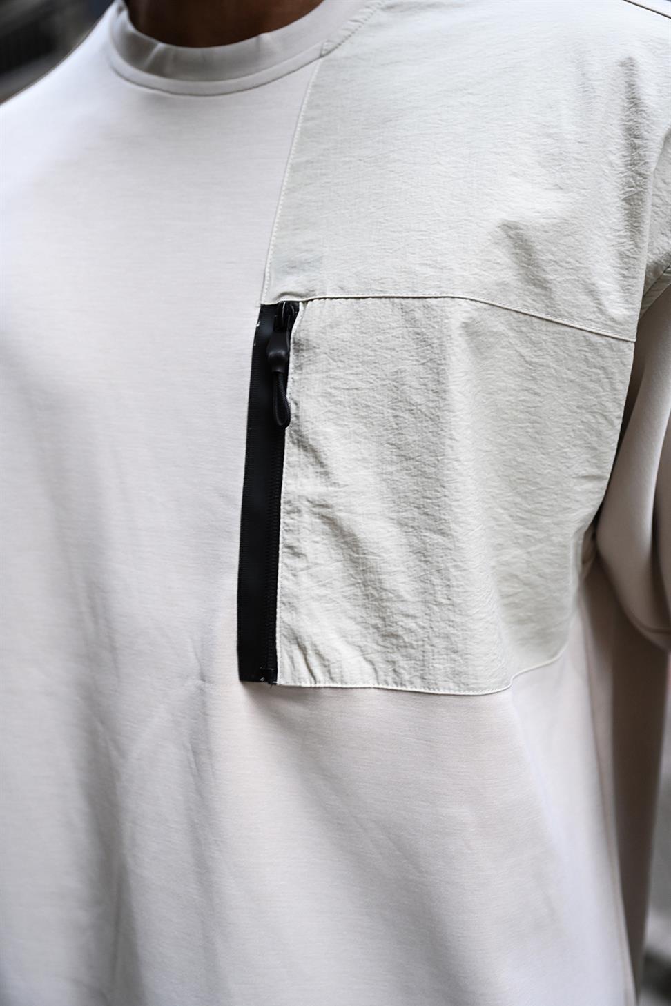 X-1004 Oversized Sweatshirt with Zipped Pocket – Beige | 3-Thread Brushed Fleece