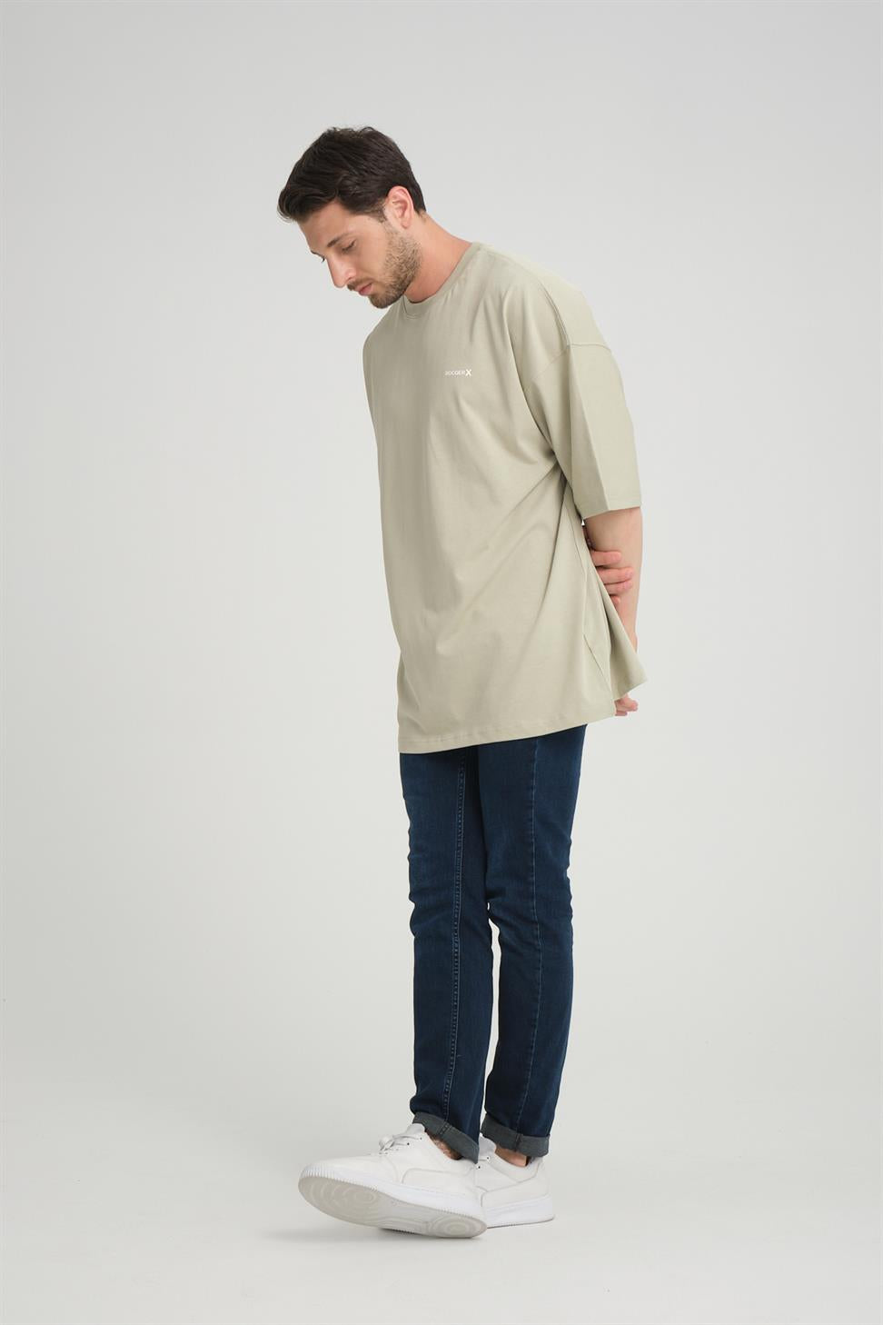 X-1004 Oversized Sweatshirt with Zipped Pocket – Beige | 3-Thread Brushed Fleece