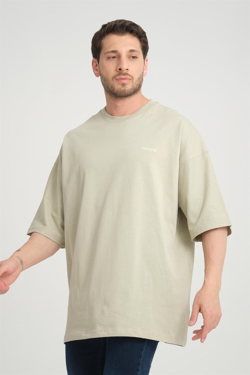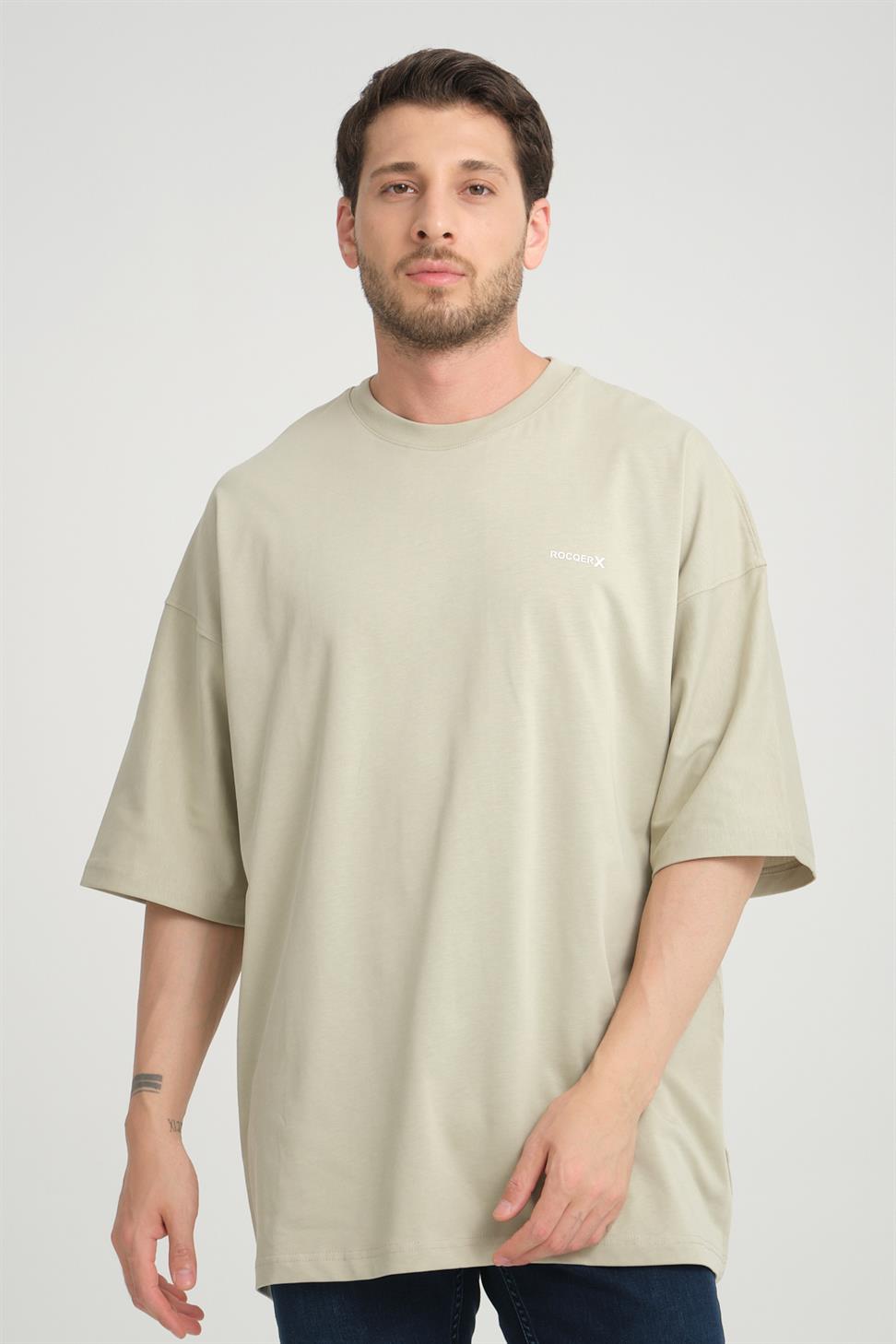 R-5775 Men’s Basic T-Shirt with Rocqerx Print – Beige