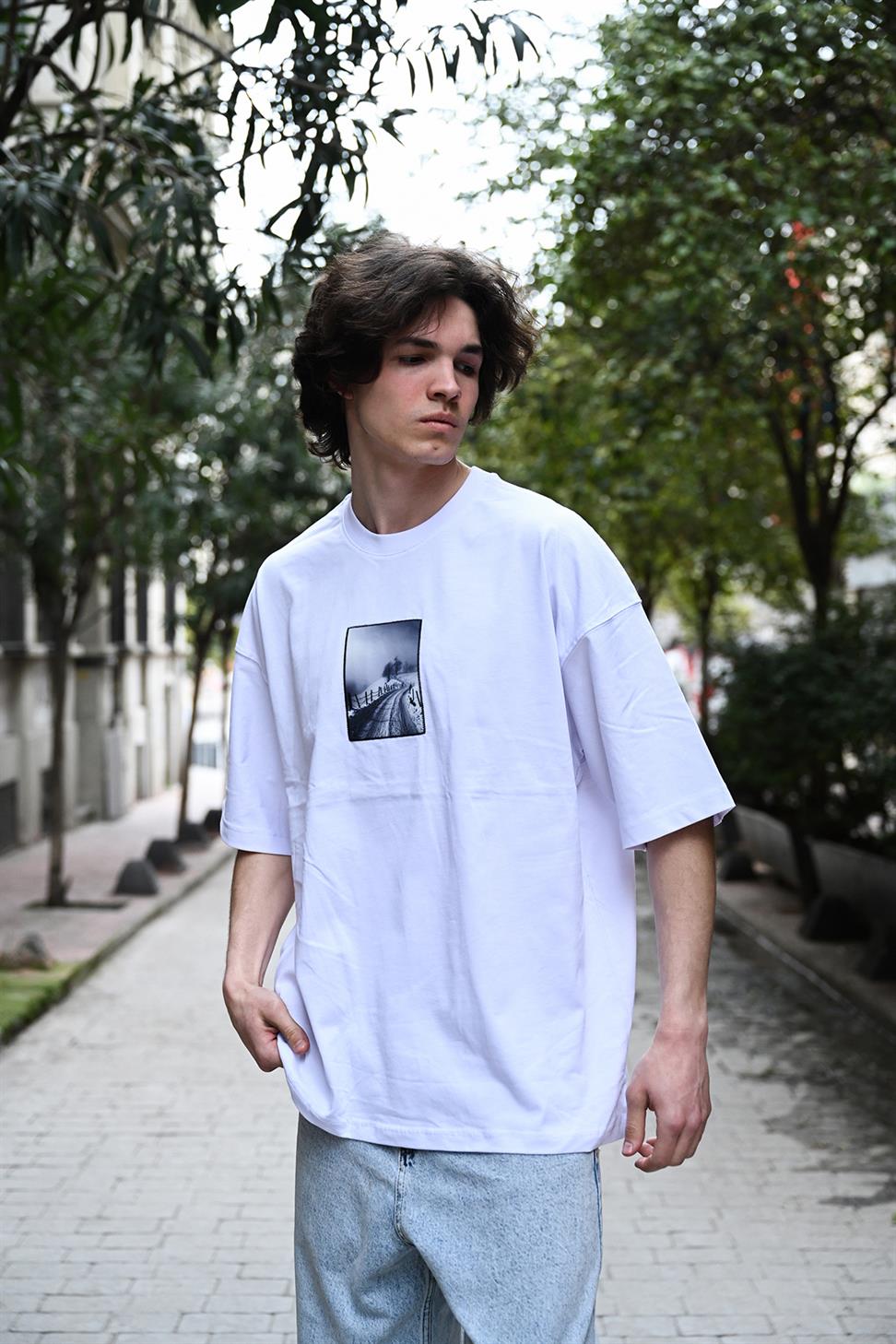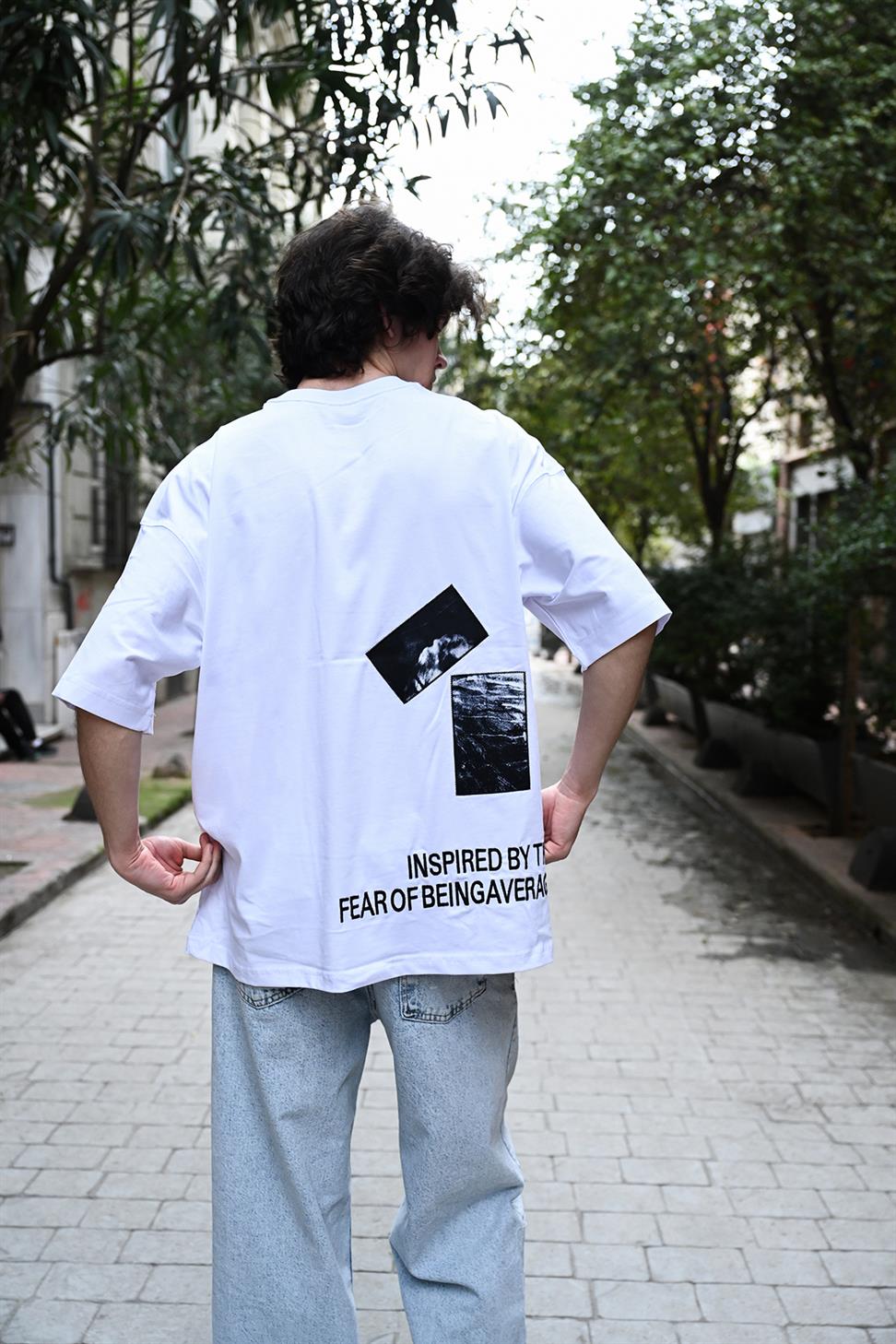 R-5805 Back Printed Supima T-Shirt with Patch Detail – White