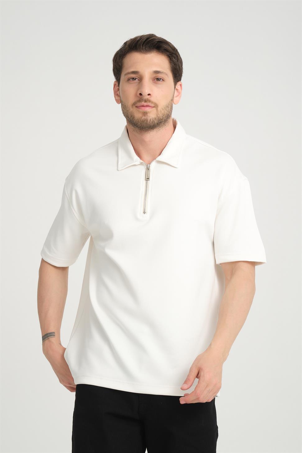 R-5812 Half-Placket Zipper Detail Scuba T-Shirt