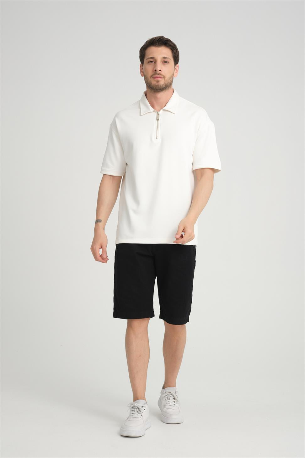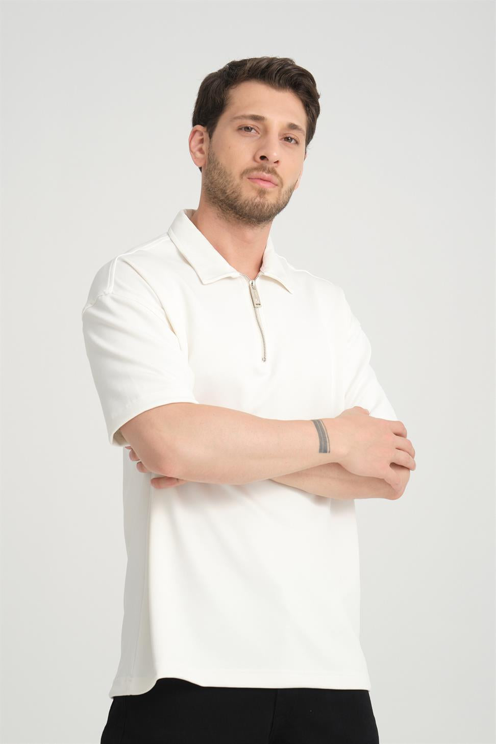 The Half-Placket Zipper Detail Scuba T-Shirt combines sporty elegance with everyday comfort. Its half-placket zipper design adds a modern and functional touch, making it a standout piece for versatile styling.