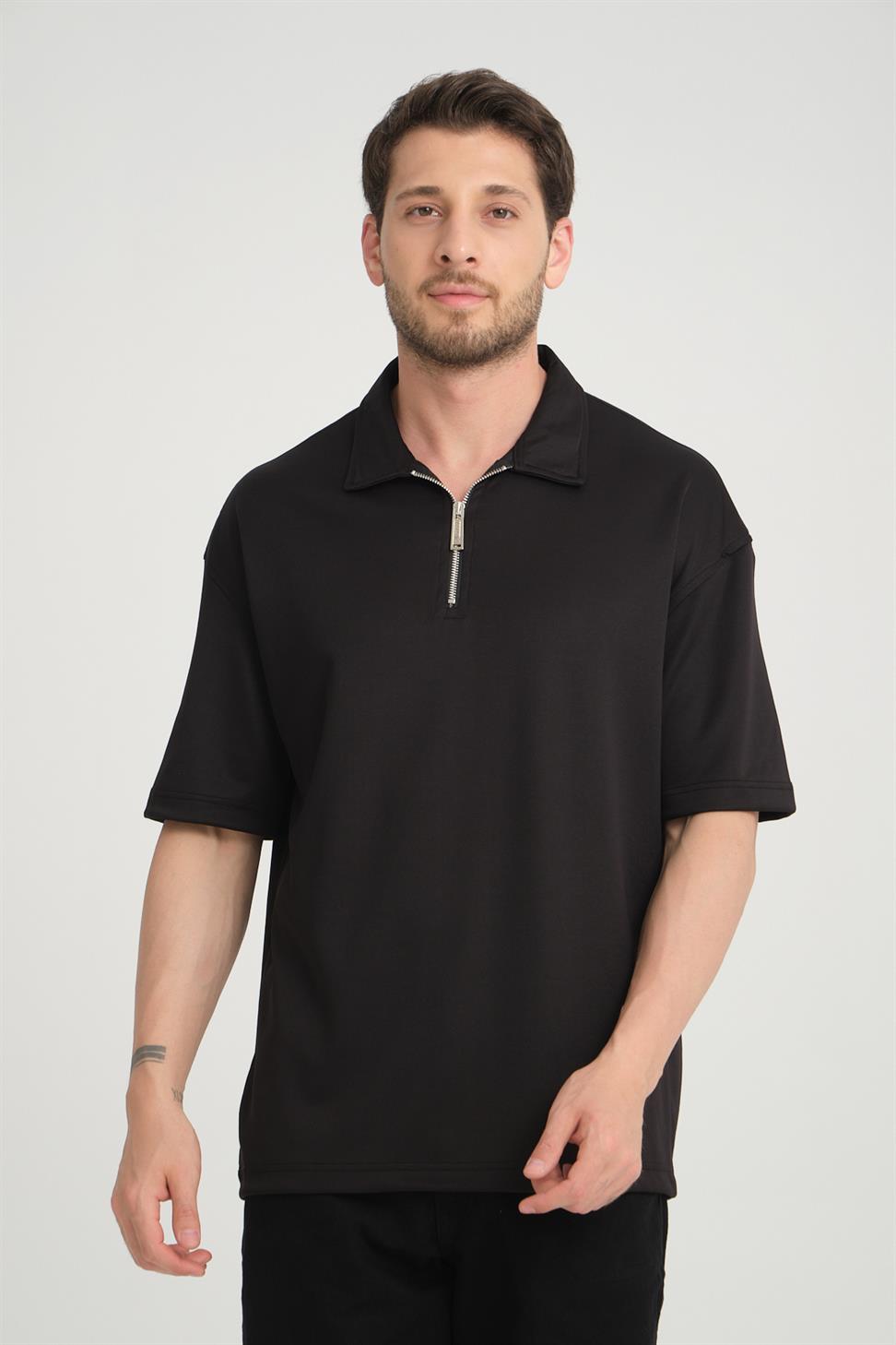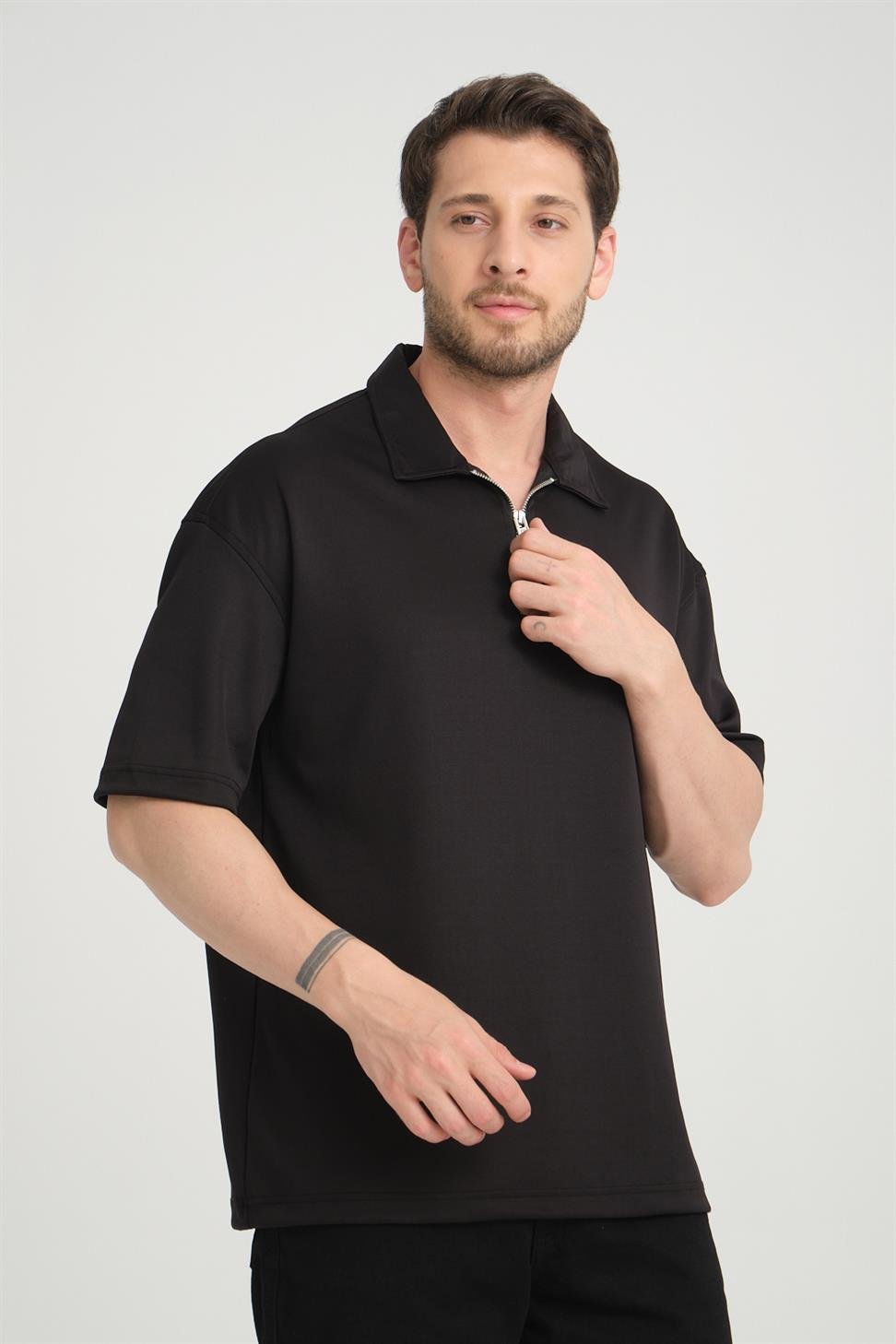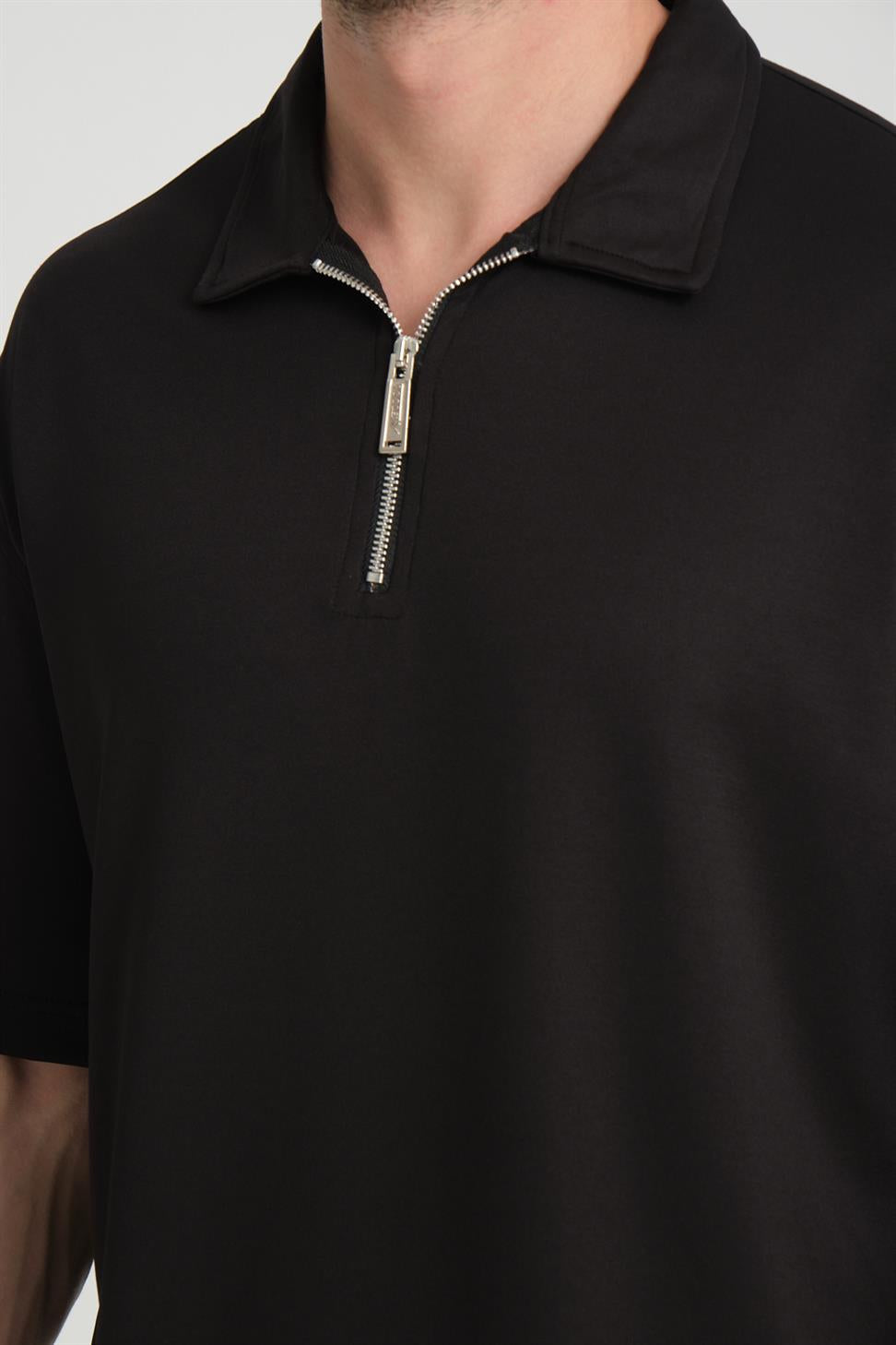R-5812 Half-Placket Zipper Detail Scuba T-Shirt – Black