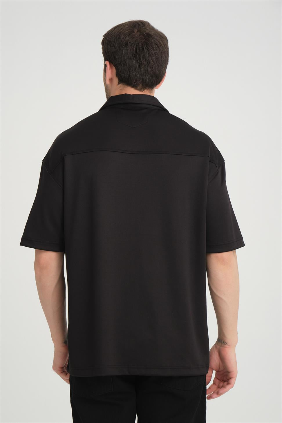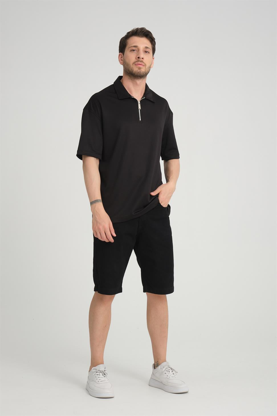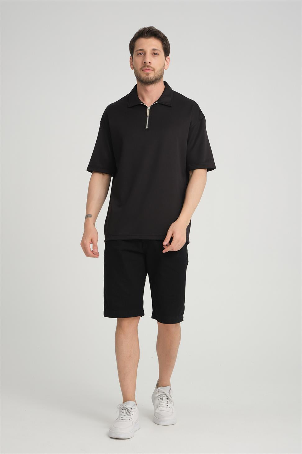R-5812 Half-Placket Zipper Detail Scuba T-Shirt – Black